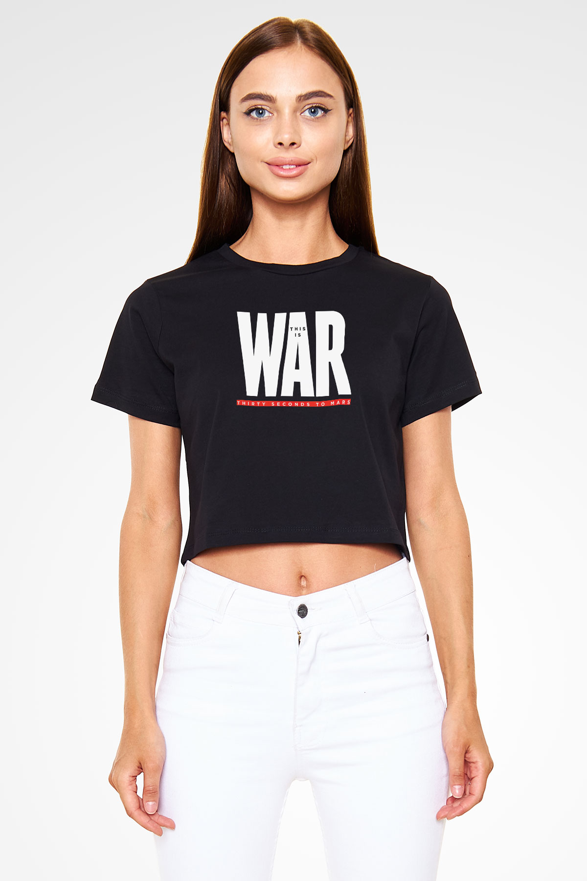 30 Seconds To Mars Baskılı Unisex Siyah Crop Top Tişört (CT54595-C)