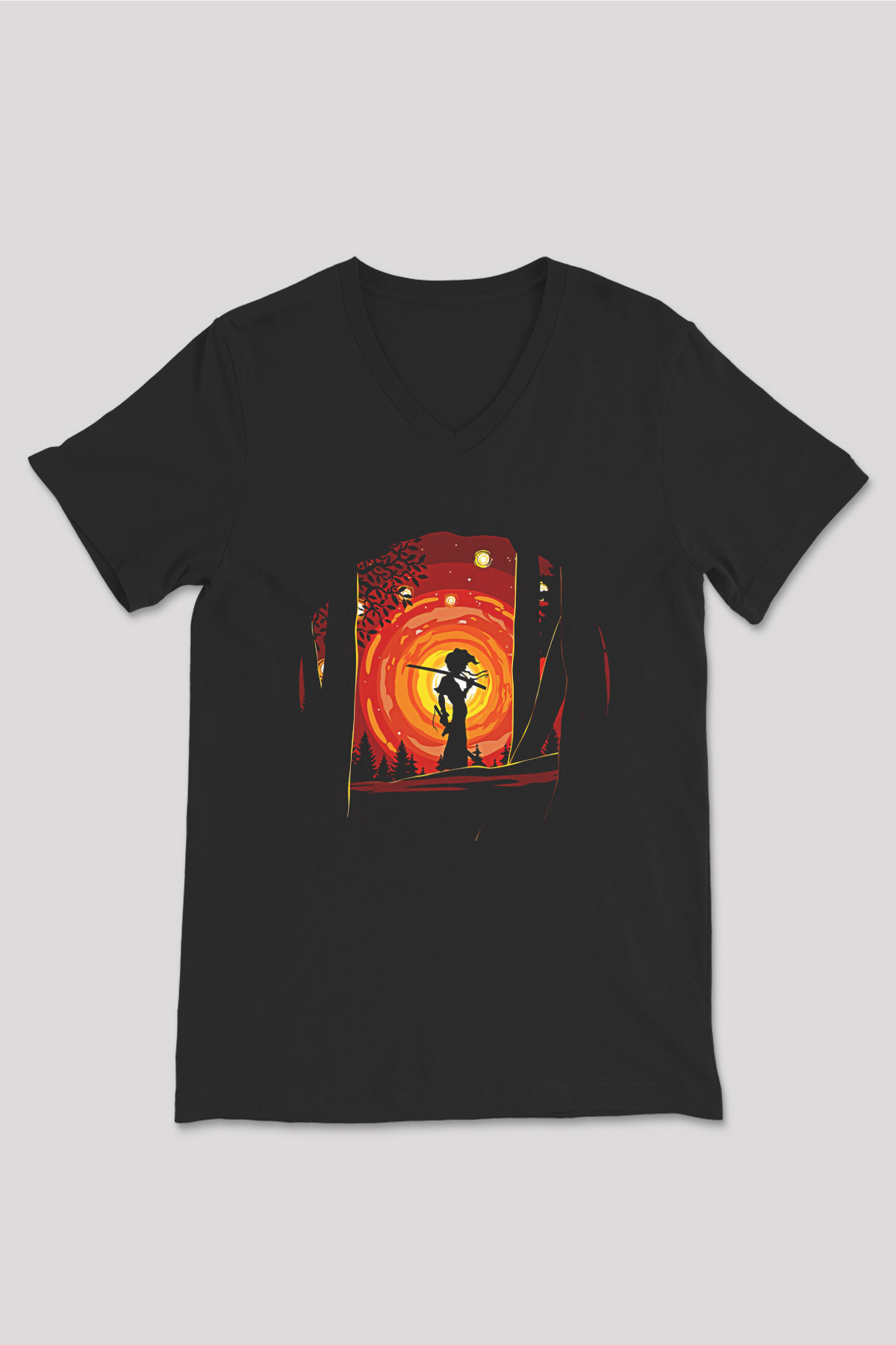 Afro Samurai Baskılı Unisex Siyah V Yaka Tişört - Tshirt (VT58737)
