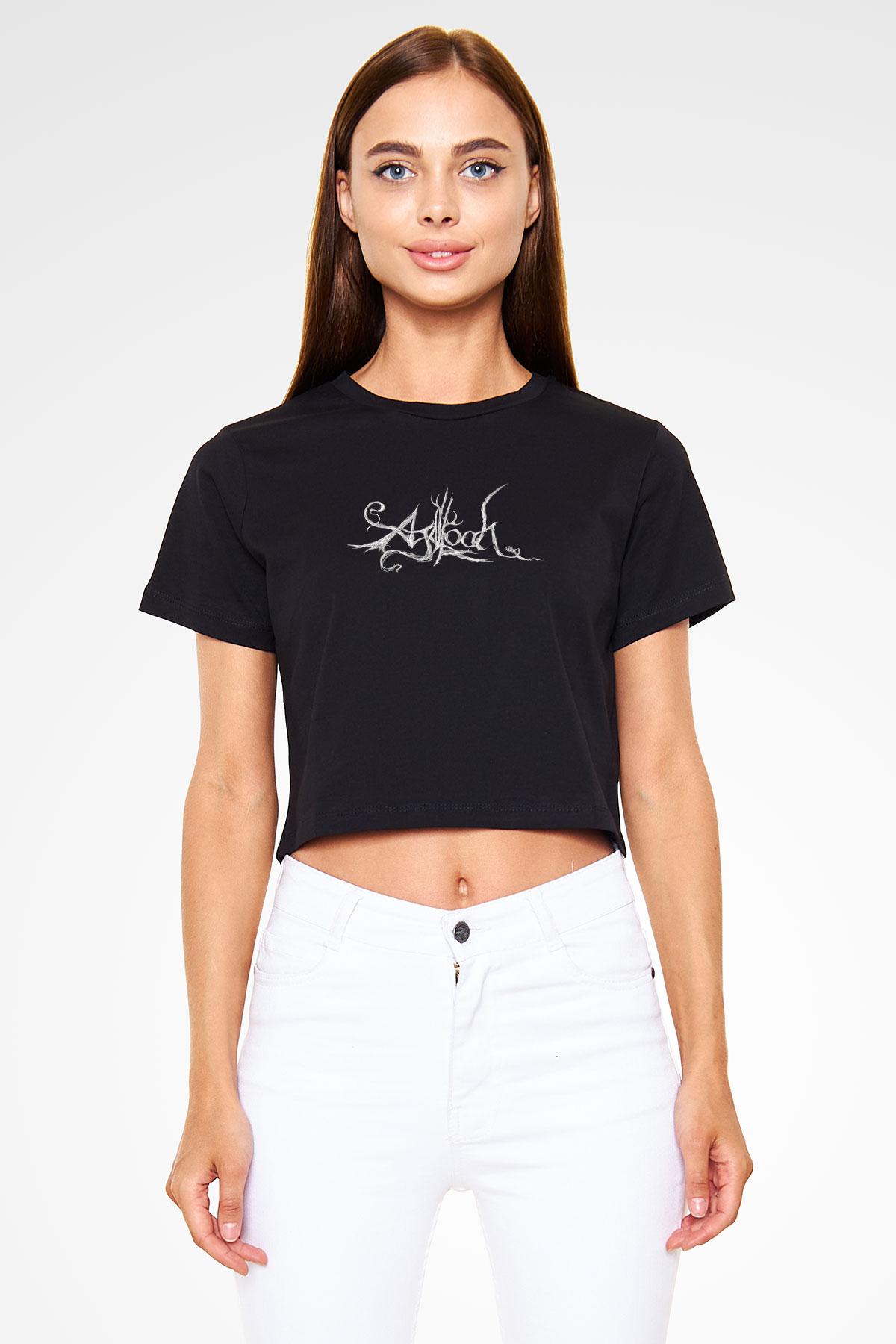 Agalloch Baskılı Siyah Crop Top Kadın Tişört - Tshirt