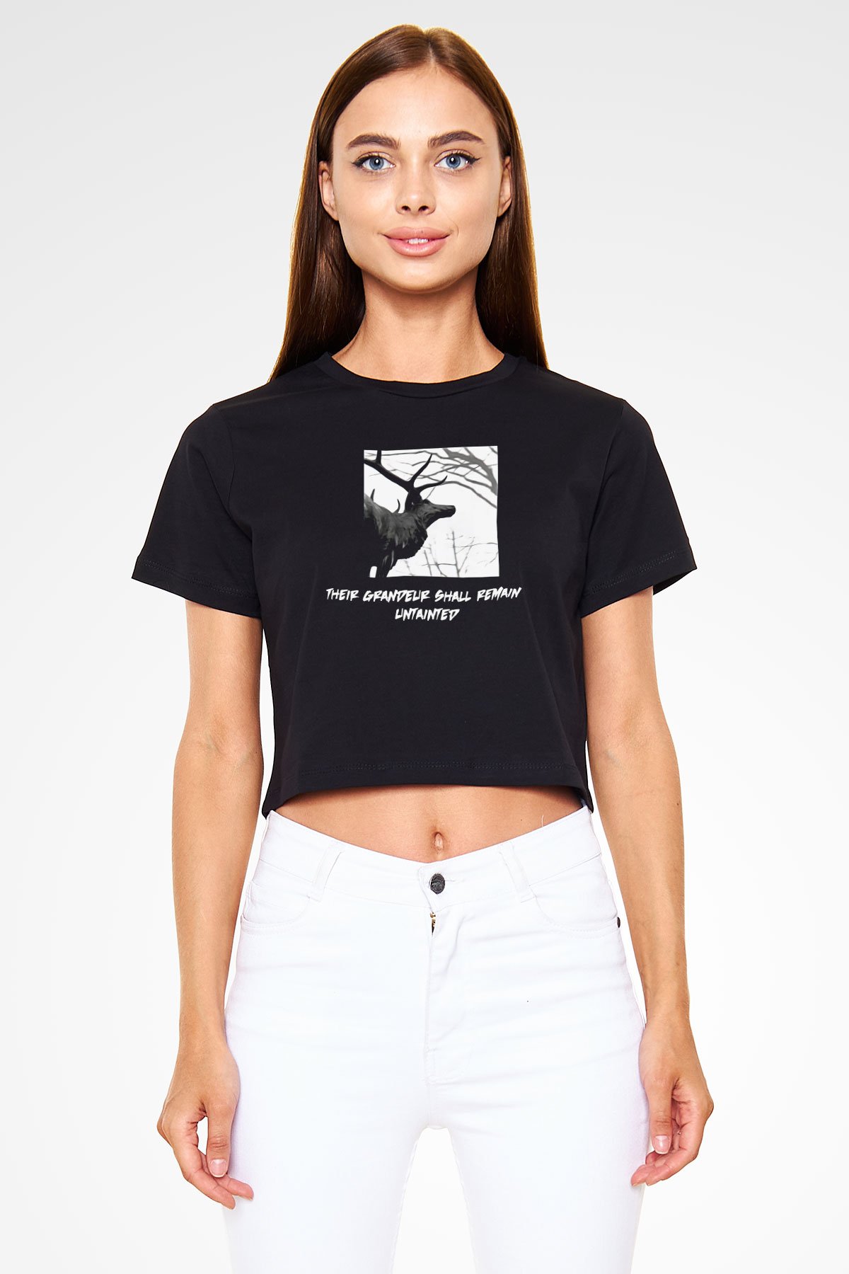 Agalloch Baskılı Siyah Crop Top Kadın Tişört - Tshirt (CT57495-C)