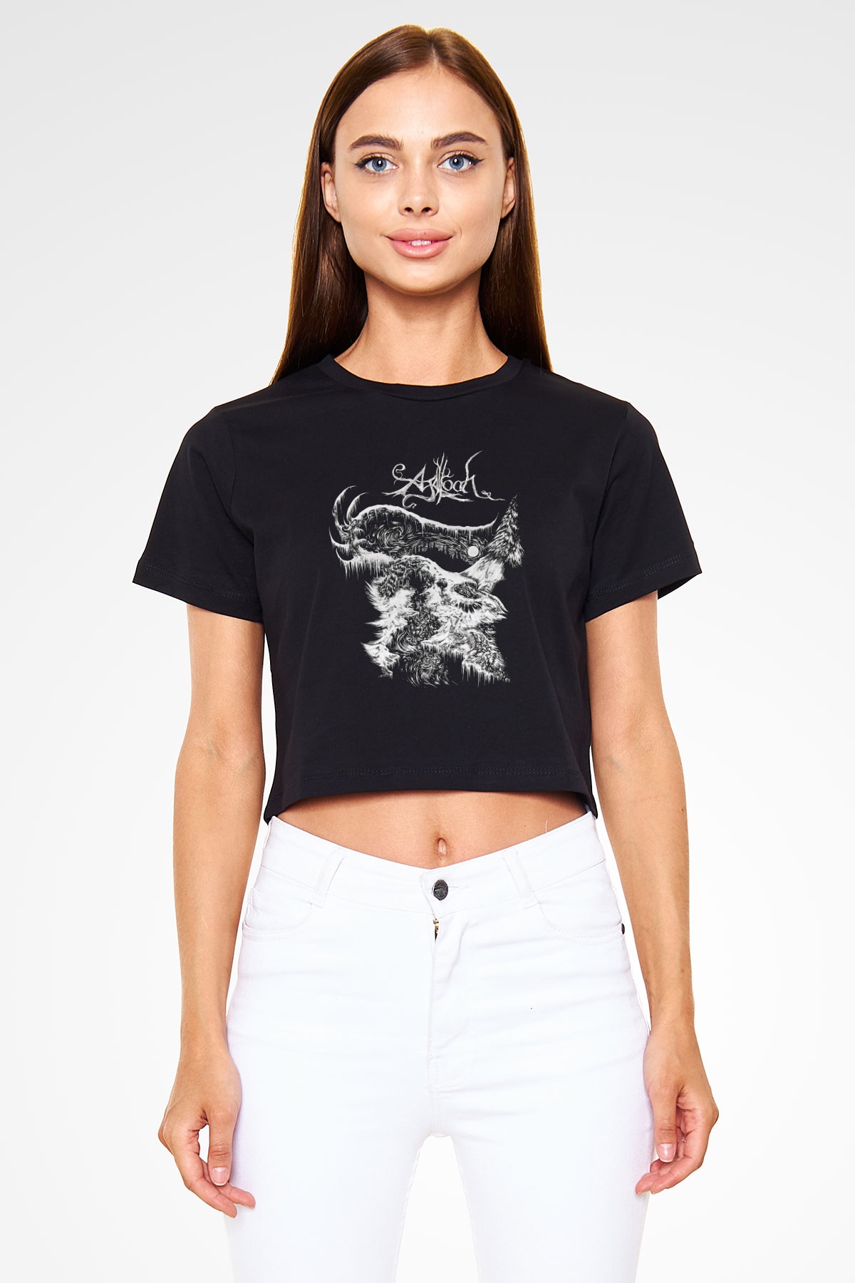 Agalloch Baskılı Siyah Crop Top Kadın Tişört - Tshirt