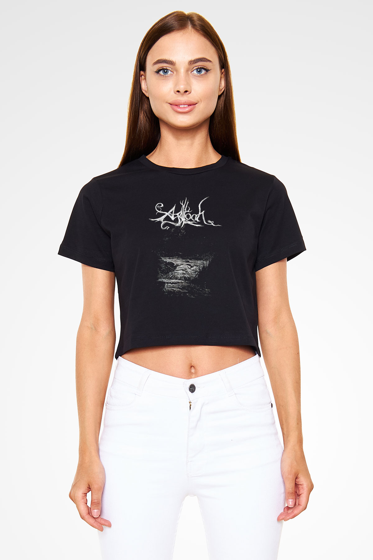 Agalloch Baskılı Siyah Crop Top Kadın Tişört - Tshirt