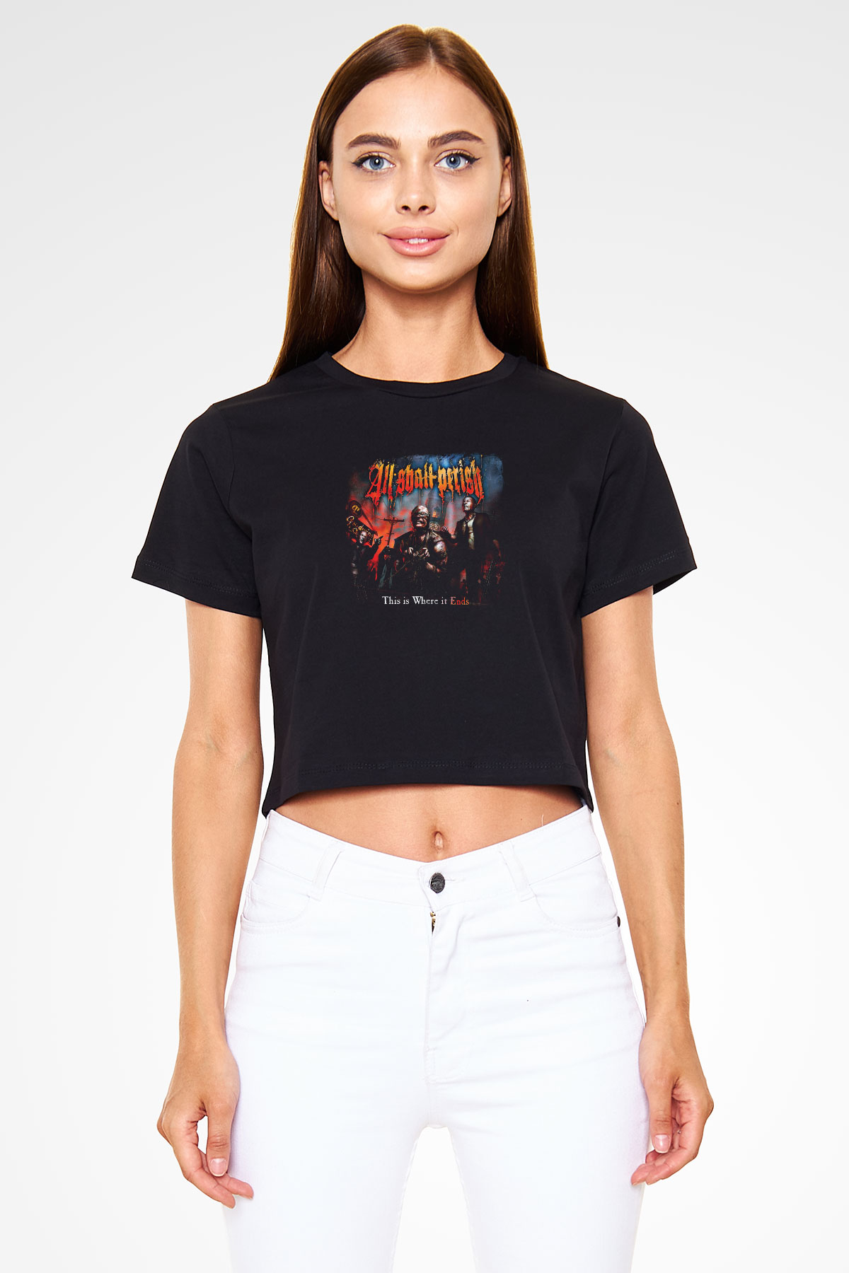 All Shall Perish Baskılı Unisex Siyah Crop Top Tişört (CT54872-C)