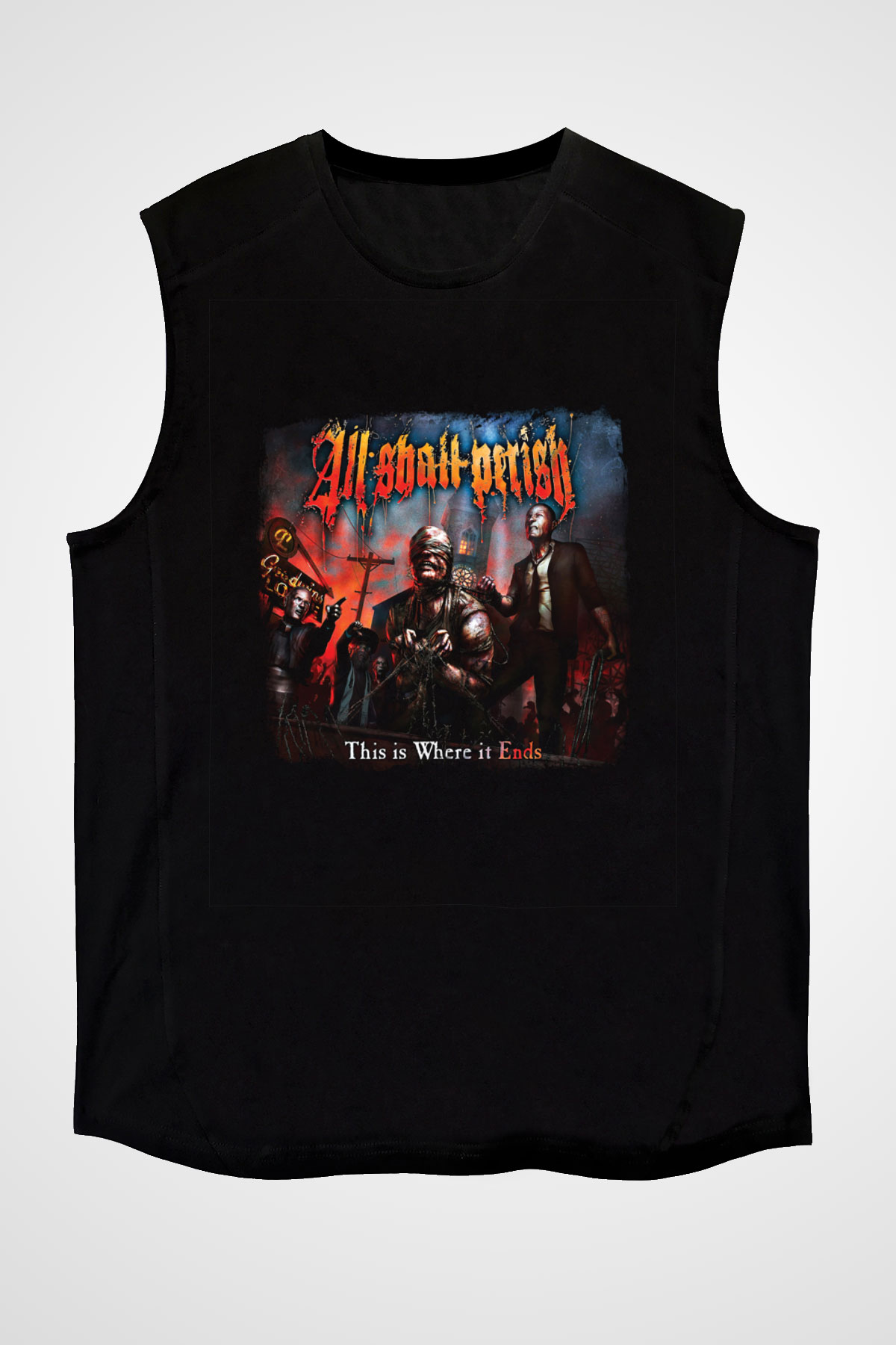 All Shall Perish Baskılı Unisex Siyah Kolsuz Tişört (KK54872)