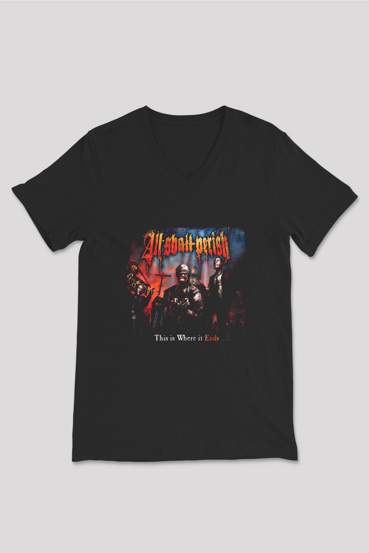 All Shall Perish Baskılı Unisex Siyah V Yaka Tişört