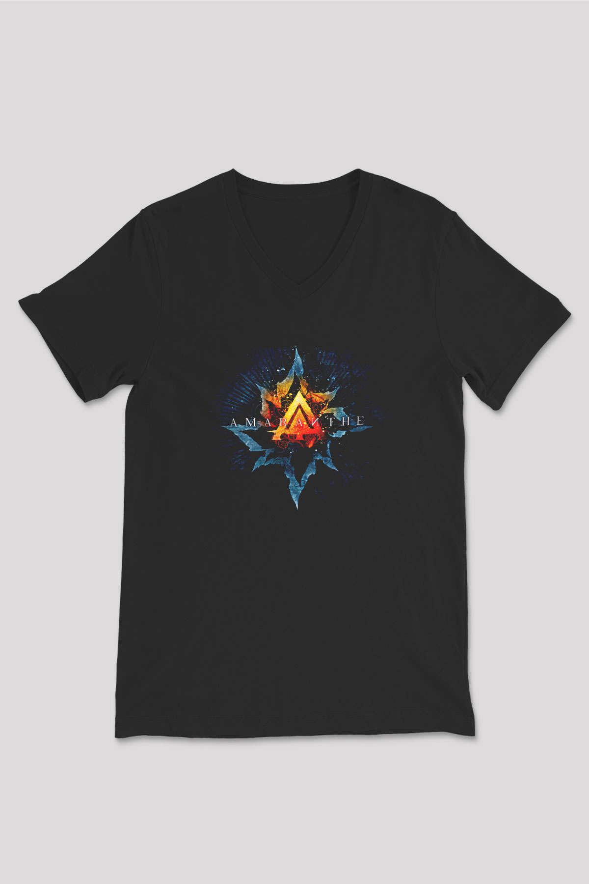 Amaranthe Baskılı Unisex Siyah V Yaka Tişört - Tshirt