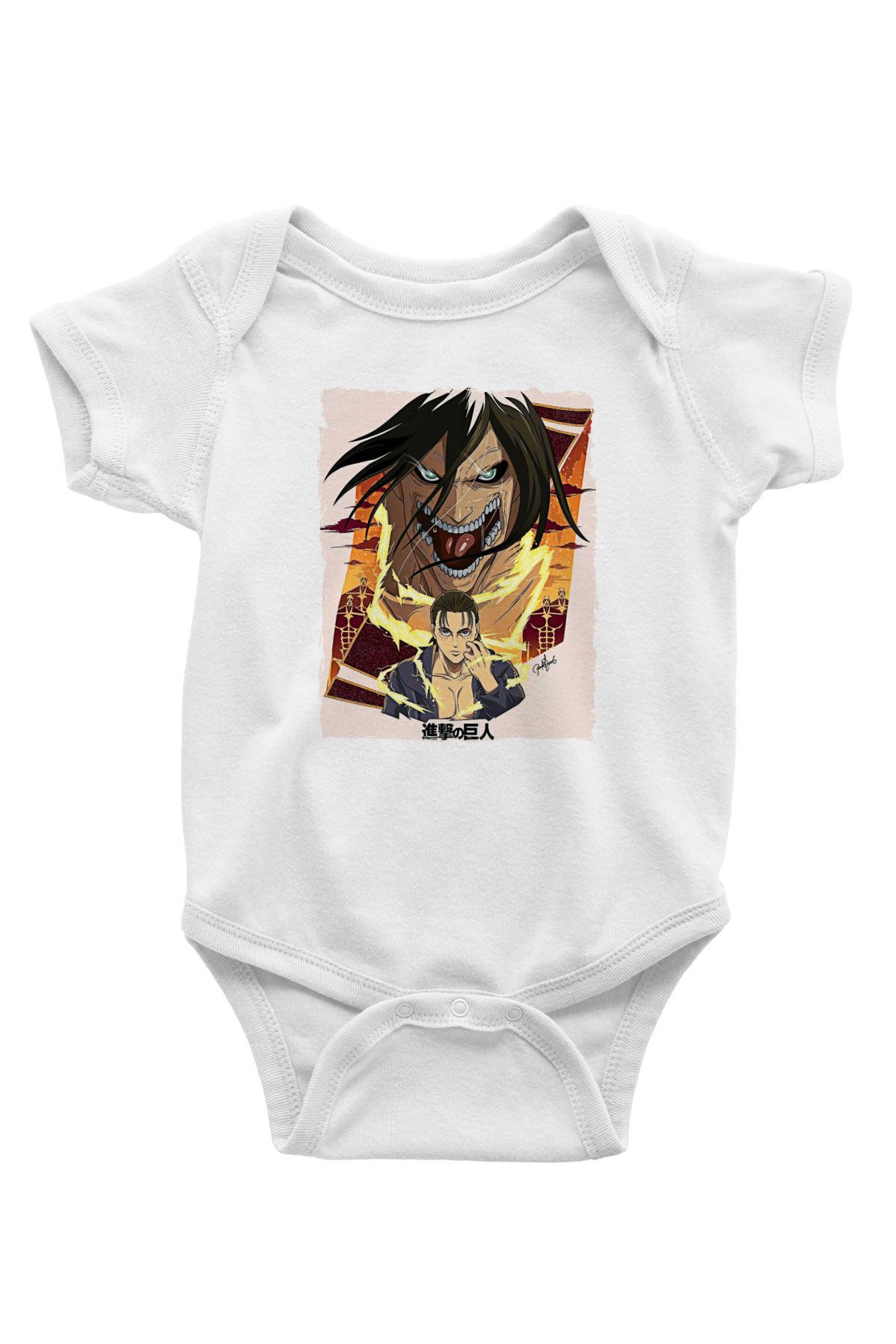 Attack On Titan Baskılı Beyaz Unisex Bebek Body - Zıbın