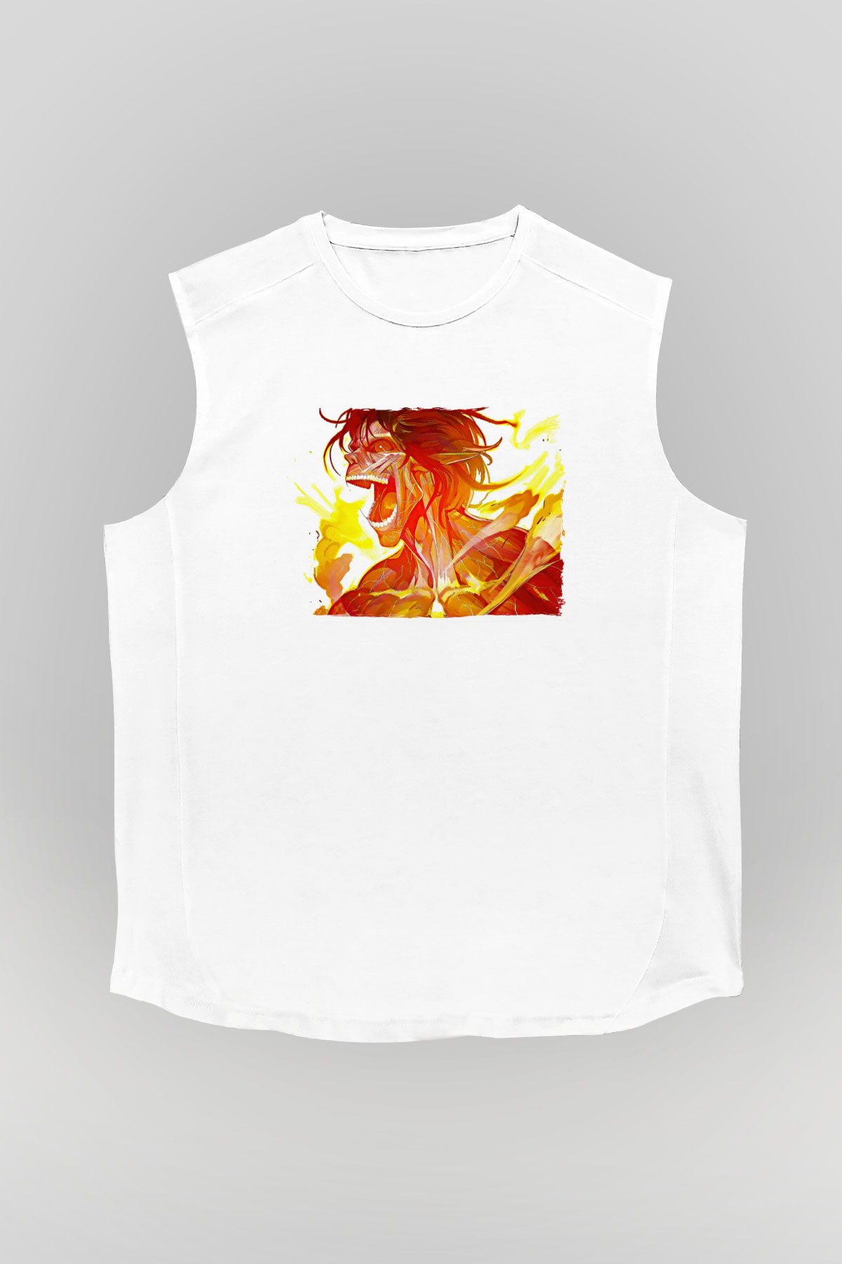 Attack On Titan Baskılı Beyaz Unisex Kolsuz Tişört - Tshirt (KK60730)