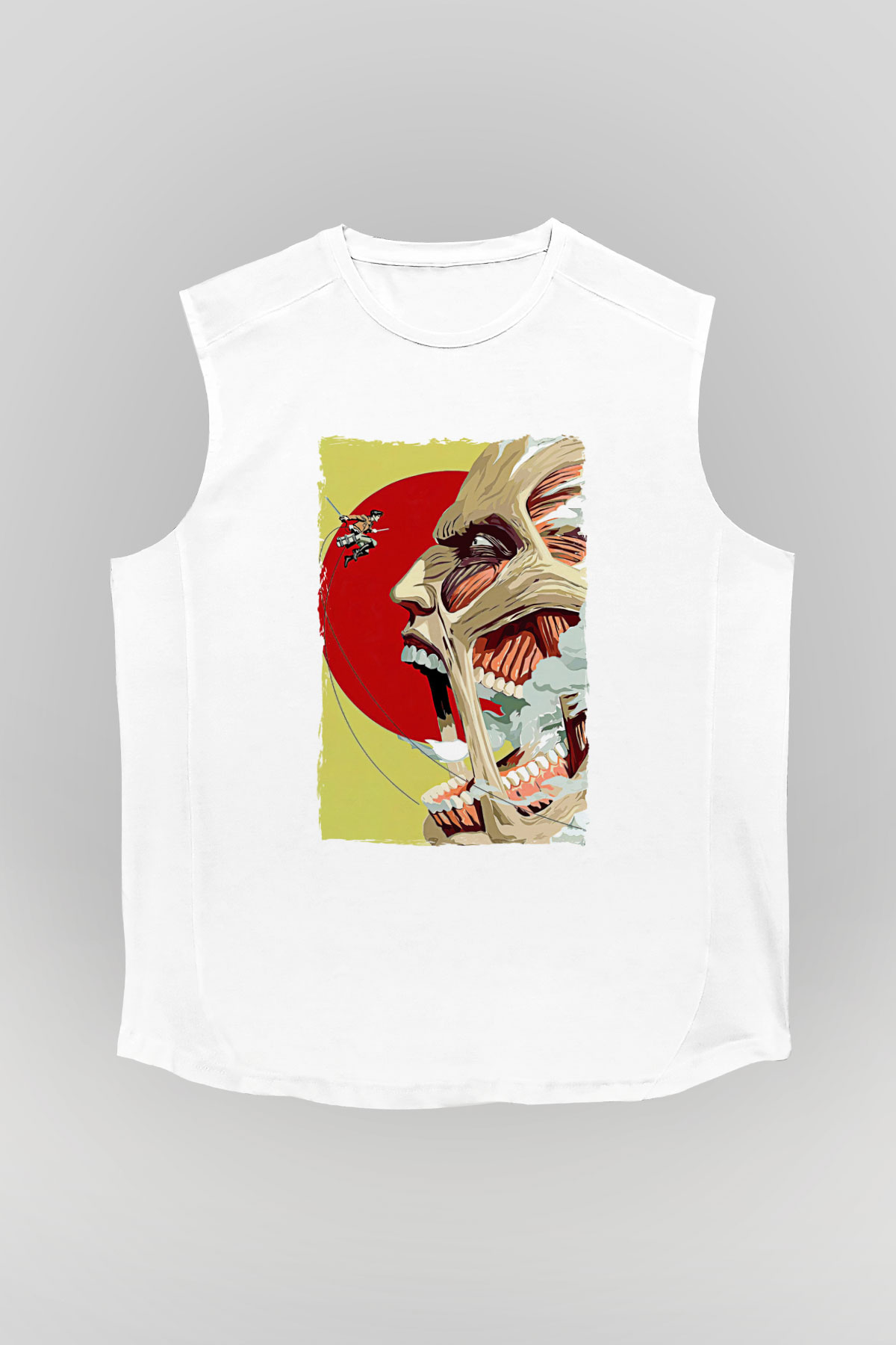 Attack On Titan Baskılı Beyaz Unisex Kolsuz Tişört - Tshirt