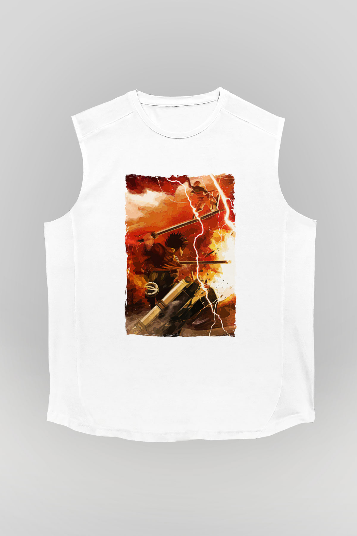 Attack On Titan Baskılı Beyaz Unisex Kolsuz Tişört - Tshirt