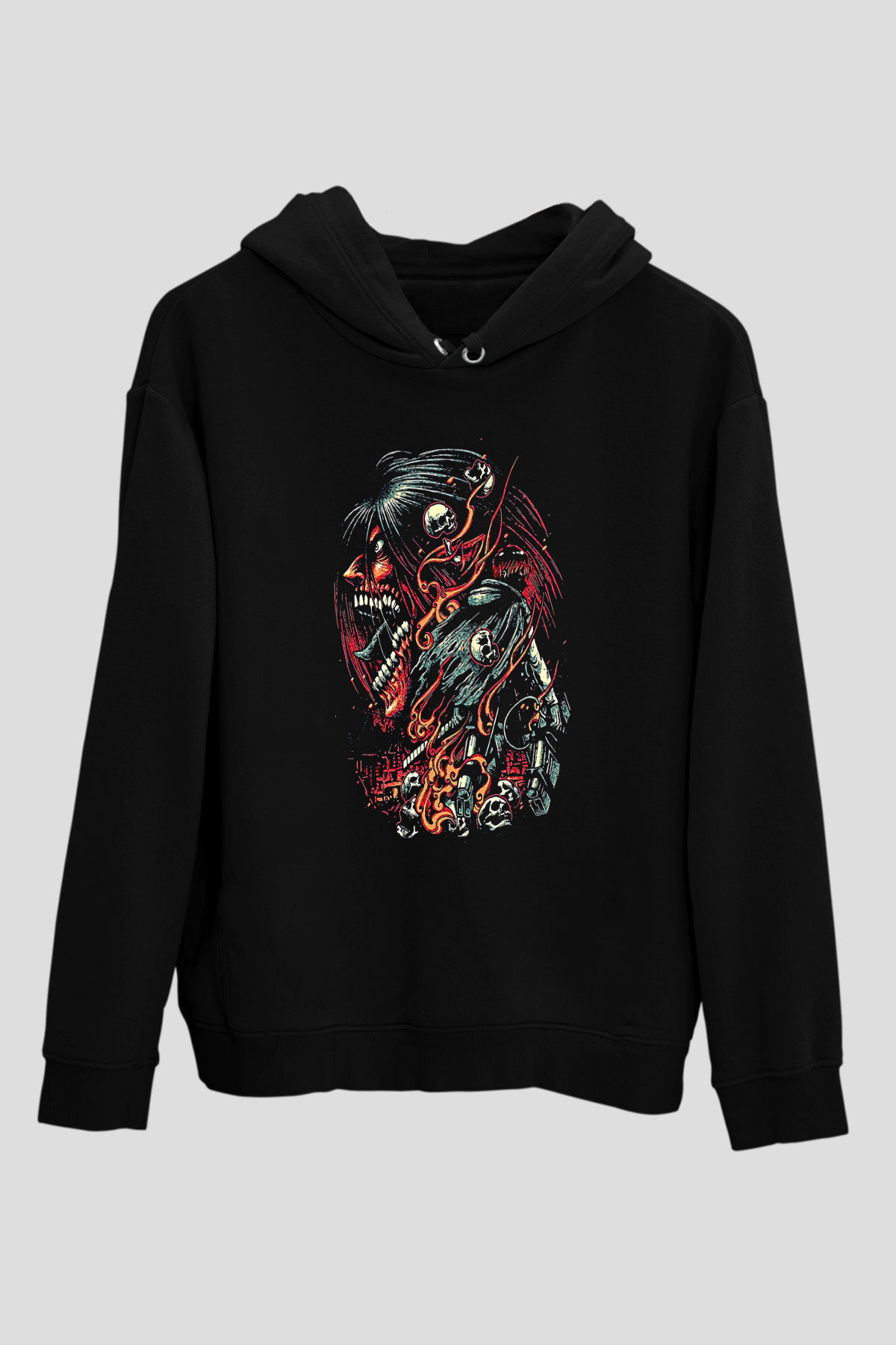 Attack On Titan Baskılı Unisex Siyah Hoodie