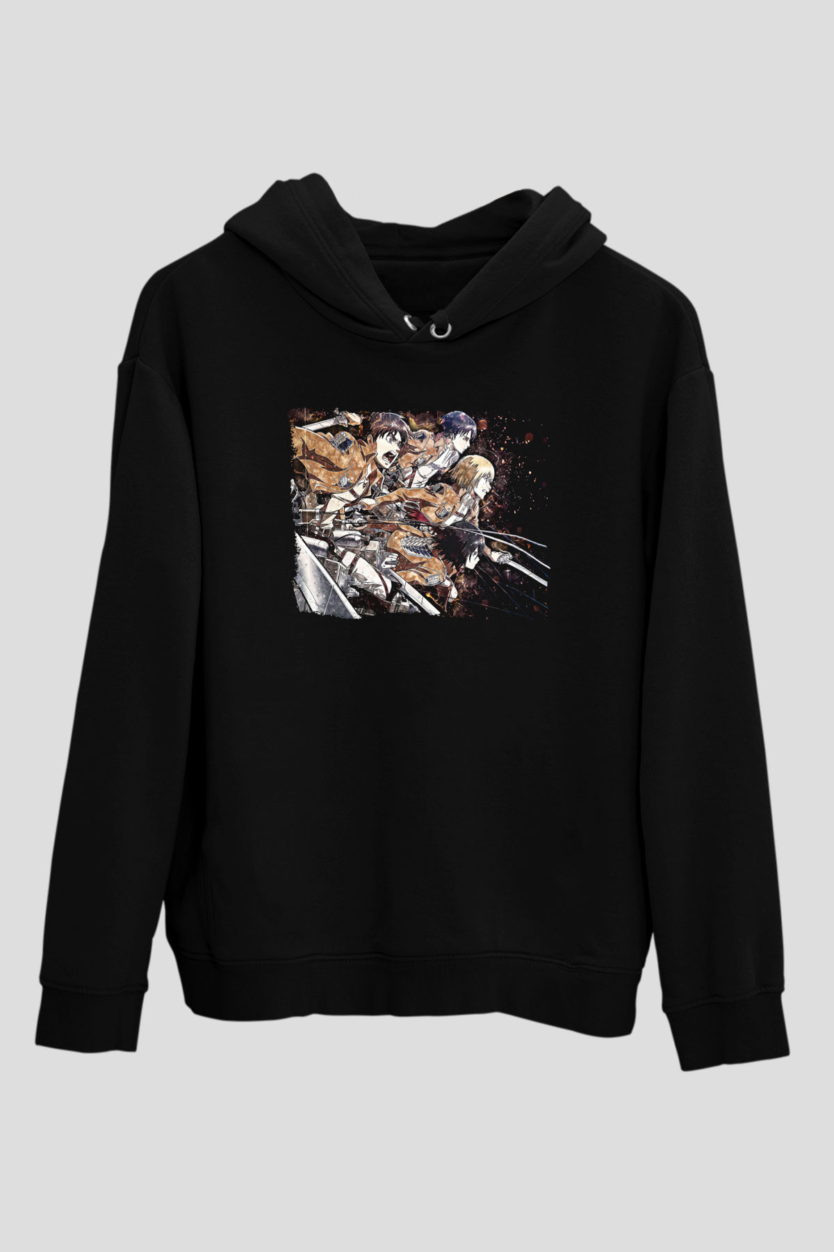 Attack On Titan Baskılı Unisex Siyah Hoodie (HUD56435)