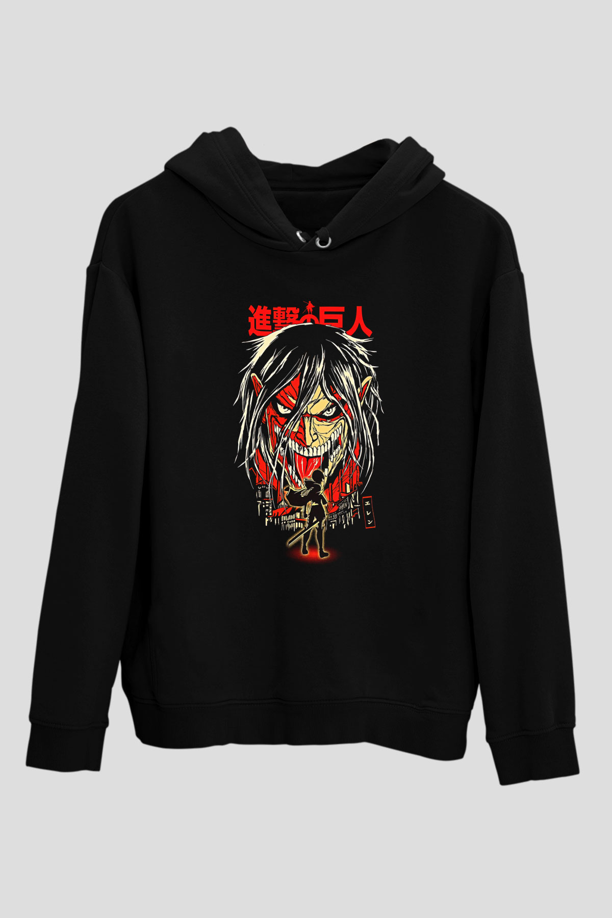 Attack On Titan Baskılı Unisex Siyah Hoodie