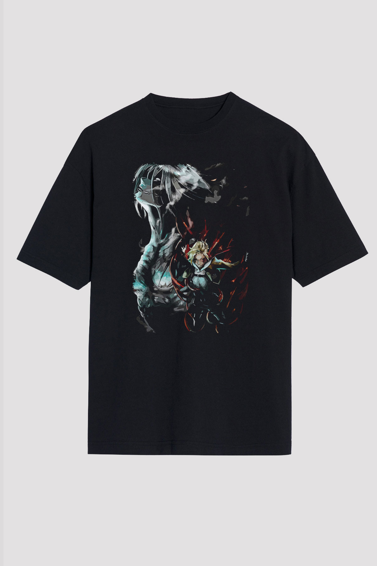 Attack On Titan Baskılı Unisex Siyah Oversize Tişört - Tshirt