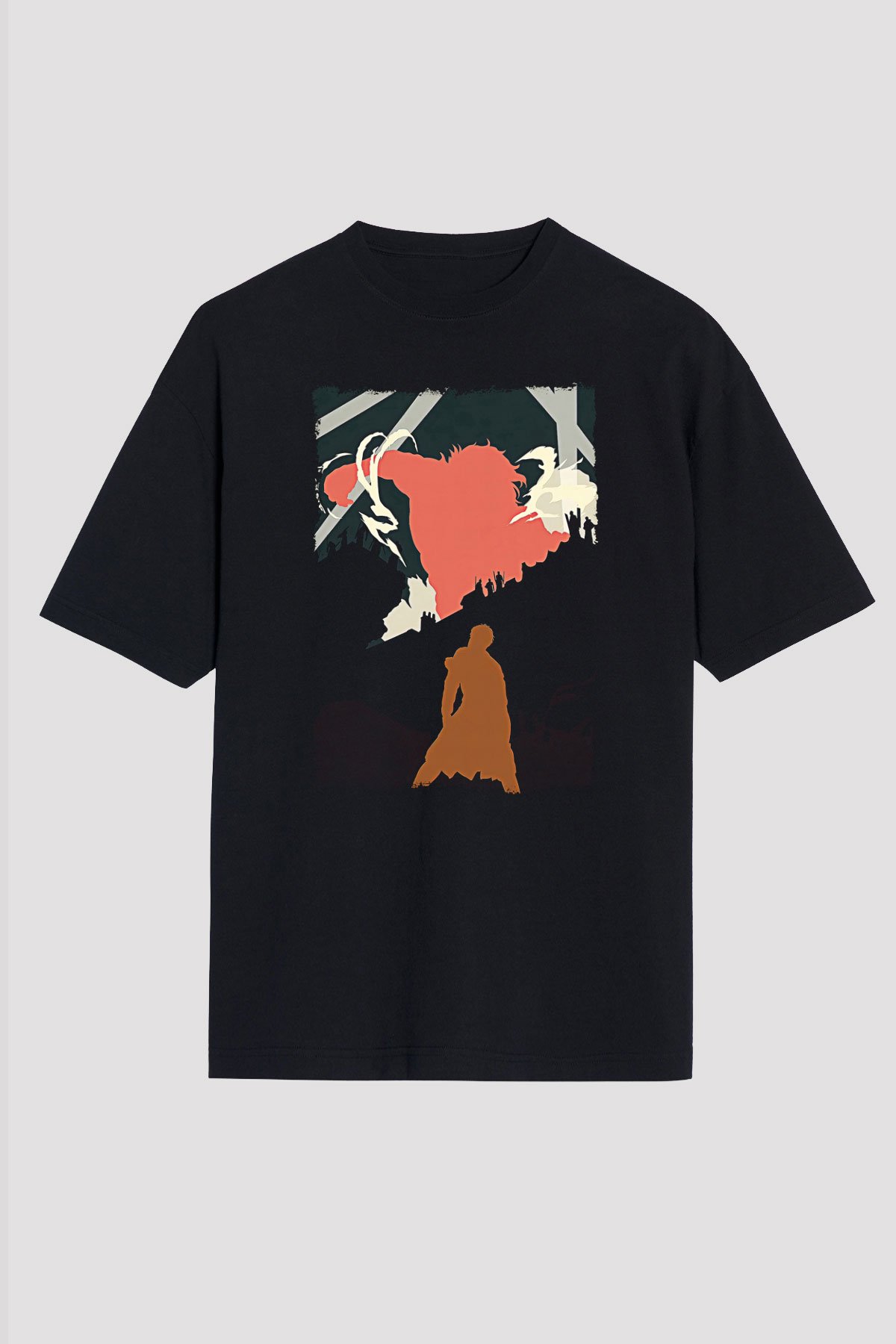 Attack On Titan Baskılı Unisex Siyah Oversize Tişört - Tshirt (OS56380)