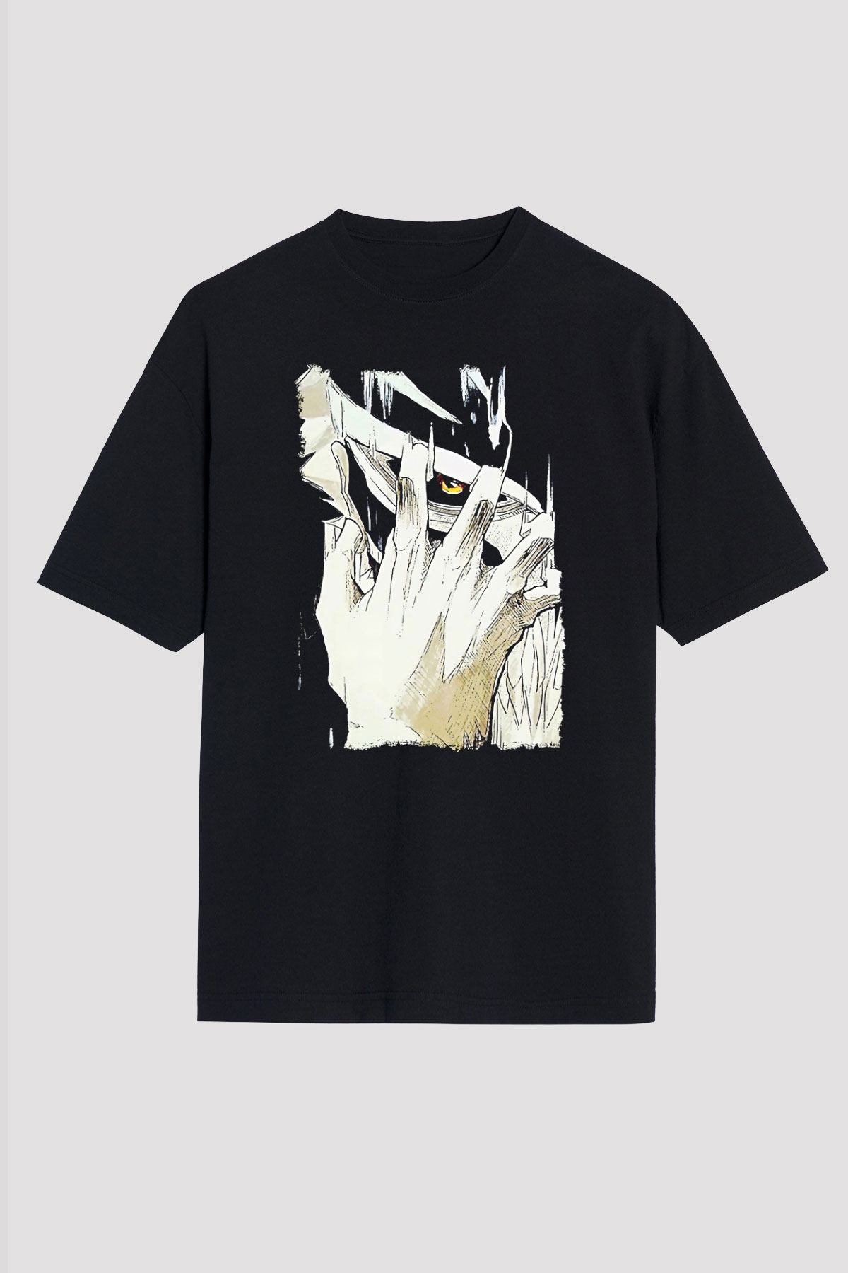 Attack On Titan Baskılı Unisex Siyah Oversize Tişört - Tshirt