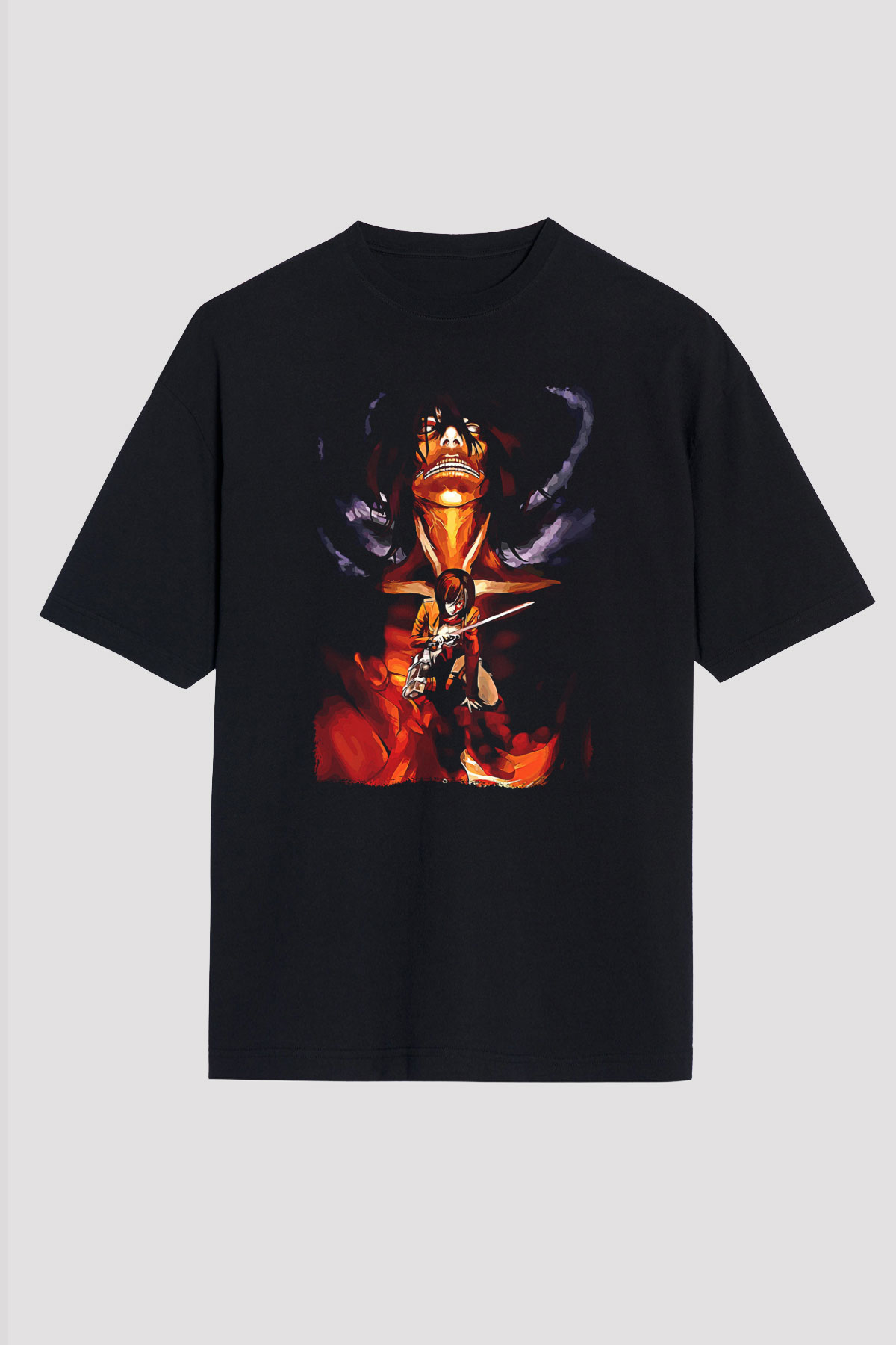 Attack On Titan Baskılı Unisex Siyah Oversize Tişört - Tshirt (OS56402)