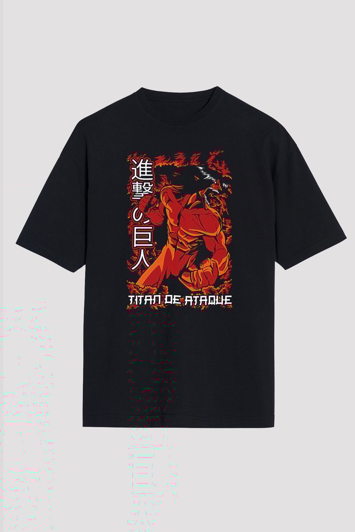 Attack On Titan Baskılı Unisex Siyah Oversize Tişört - Tshirt (OS56411)