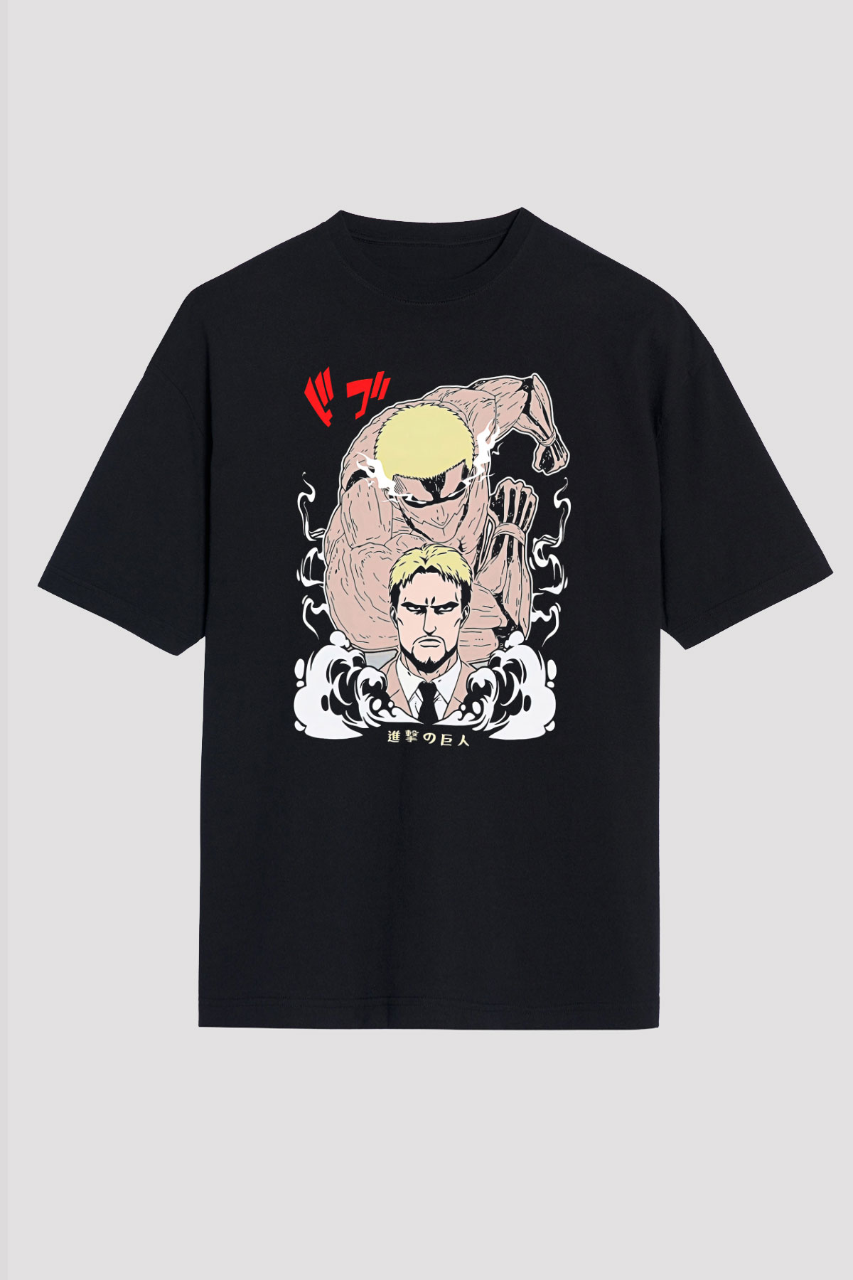 Attack On Titan Baskılı Unisex Siyah Oversize Tişört - Tshirt