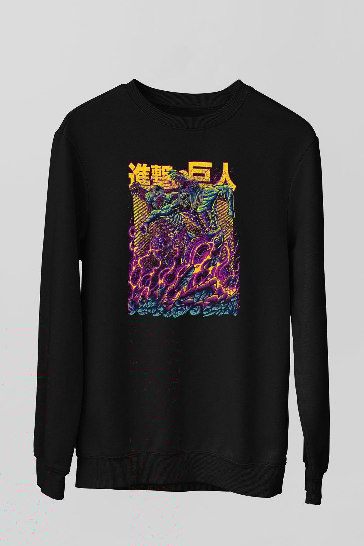 Attack On Titan Baskılı Unisex Siyah Sweatshirt