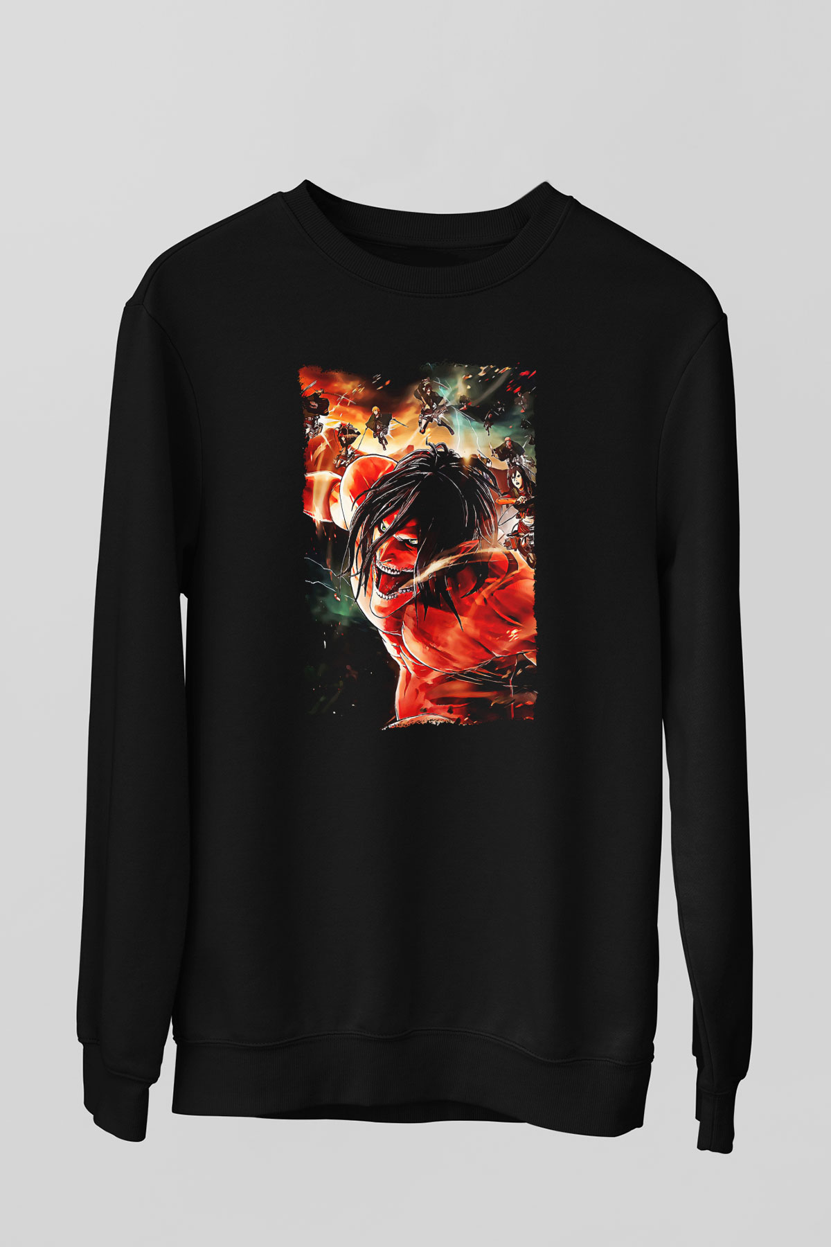 Attack On Titan Baskılı Unisex Siyah Sweatshirt (SW56358)
