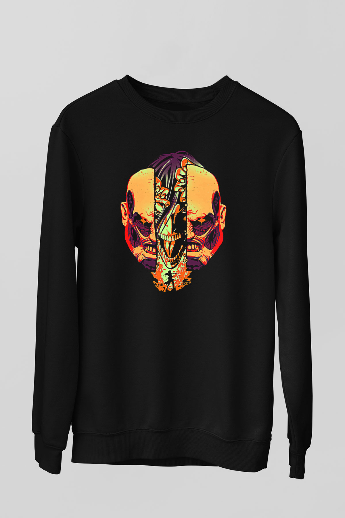 Attack On Titan Baskılı Unisex Siyah Sweatshirt