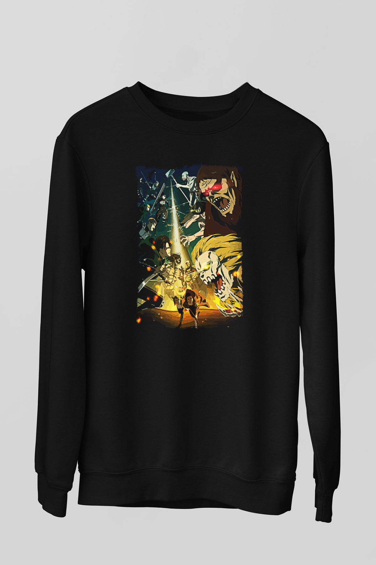 Attack On Titan Baskılı Unisex Siyah Sweatshirt
