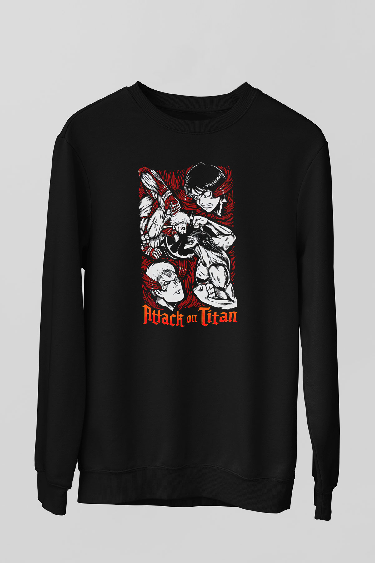 Attack On Titan Baskılı Unisex Siyah Sweatshirt