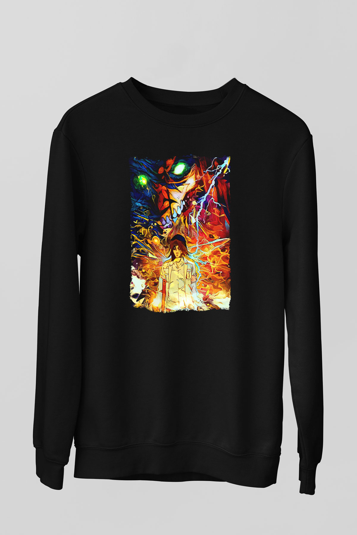 Attack On Titan Baskılı Unisex Siyah Sweatshirt