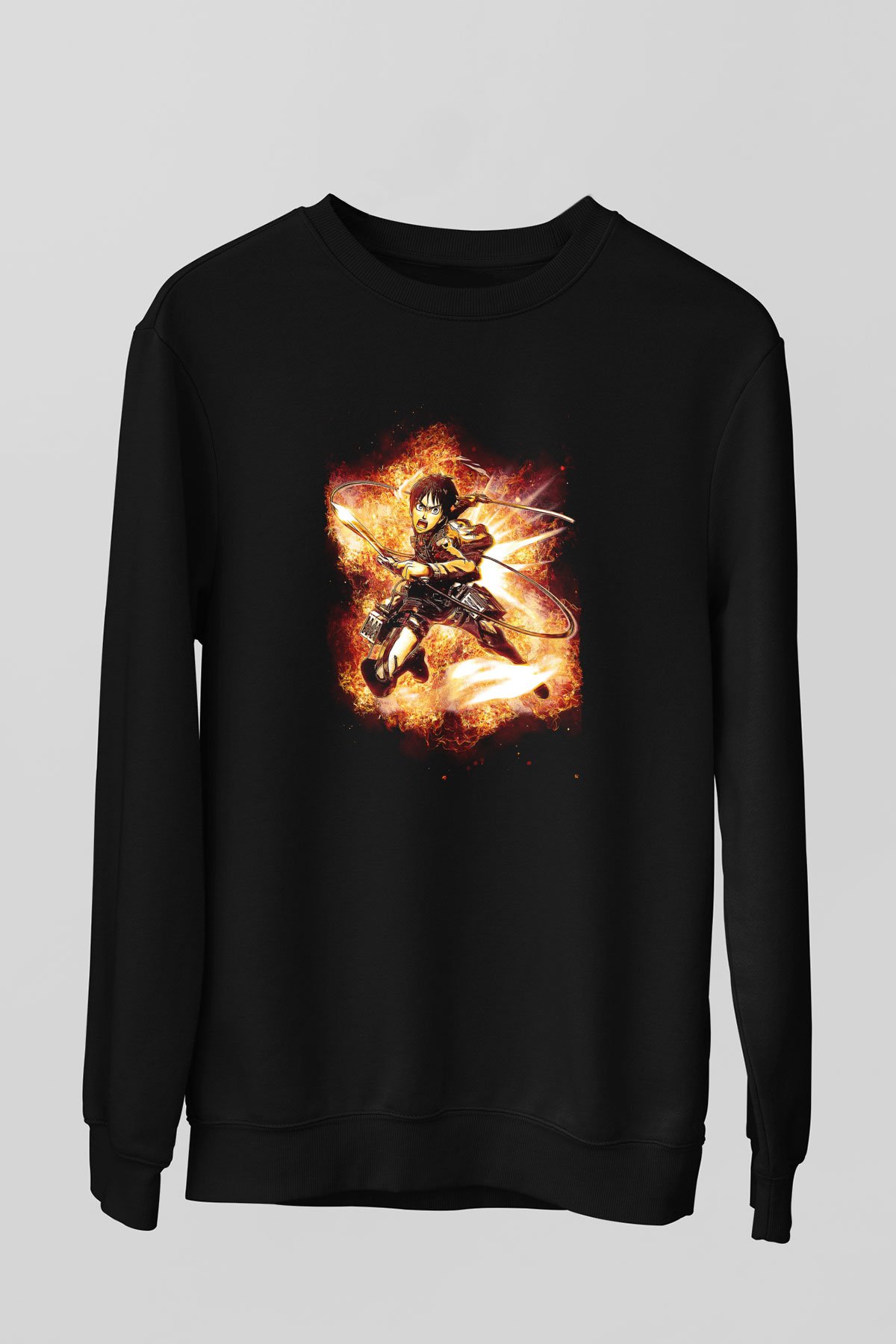 Attack On Titan Baskılı Unisex Siyah Sweatshirt (SW56462)