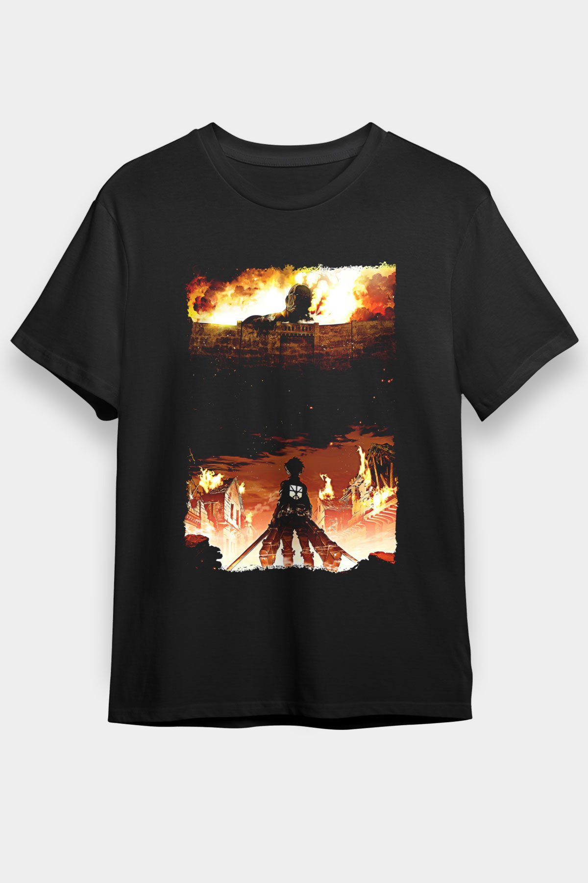 Attack On Titan Baskılı Unisex Siyah Tişört - Tshirt