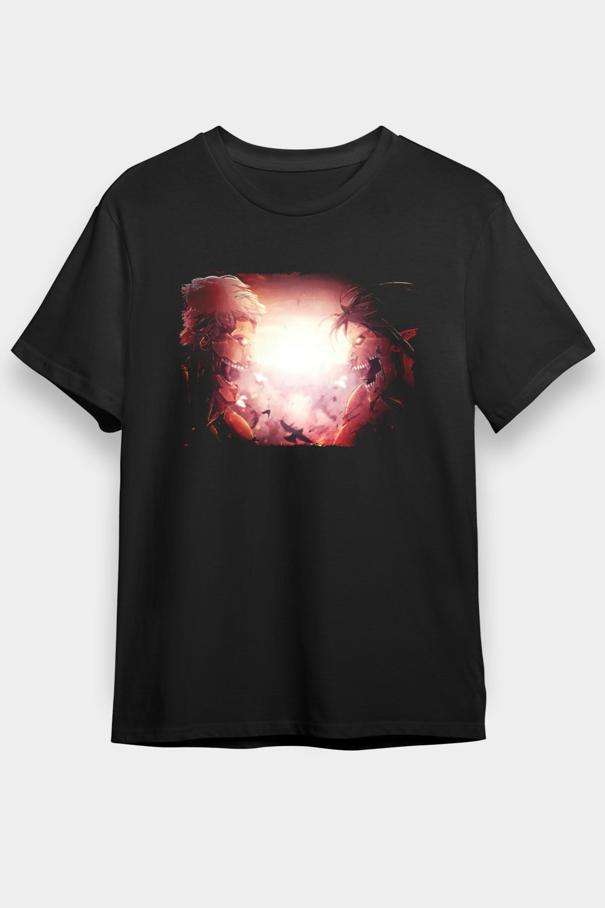 Attack On Titan Baskılı Unisex Siyah Tişört - Tshirt