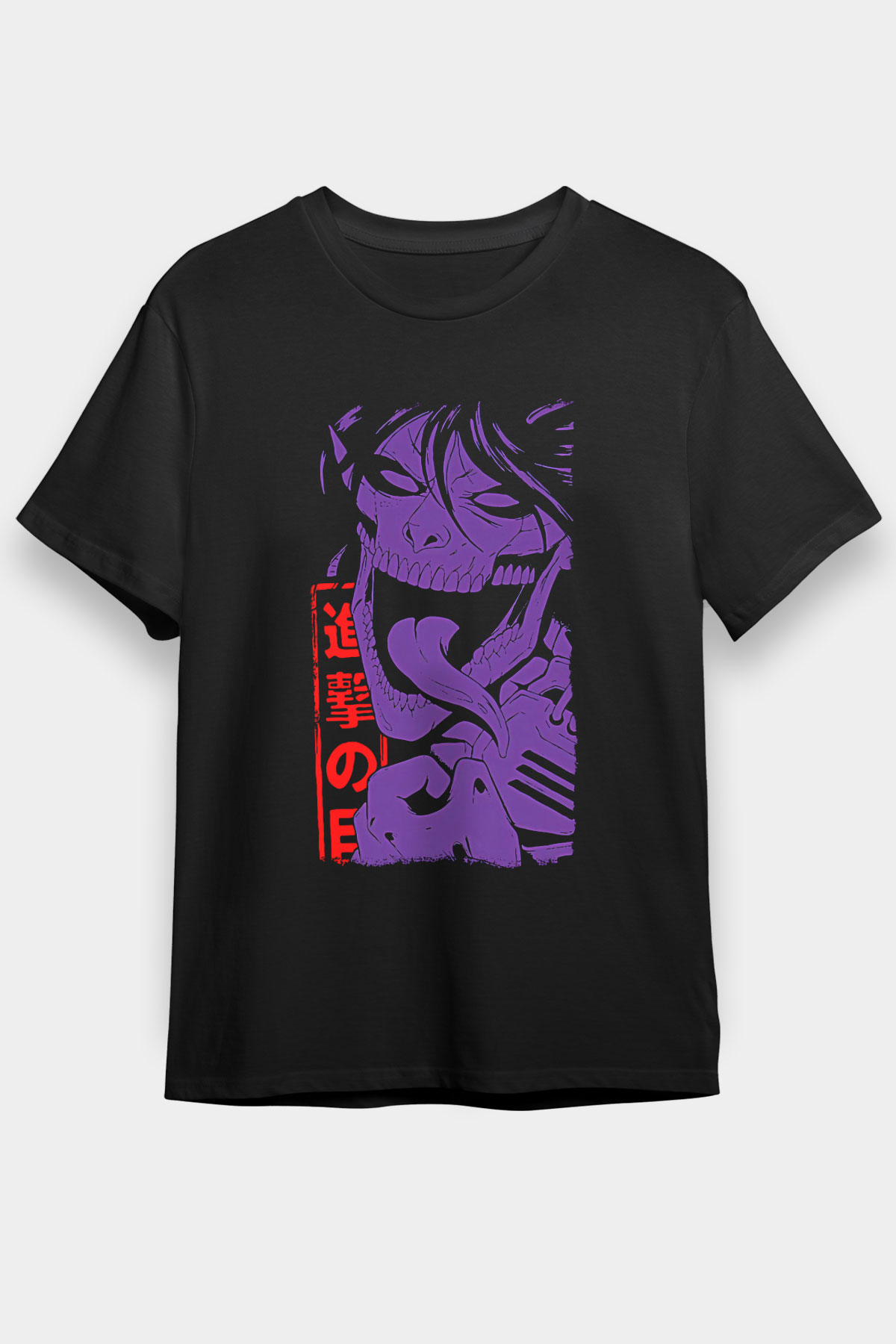 Attack On Titan Baskılı Unisex Siyah Tişört - Tshirt
