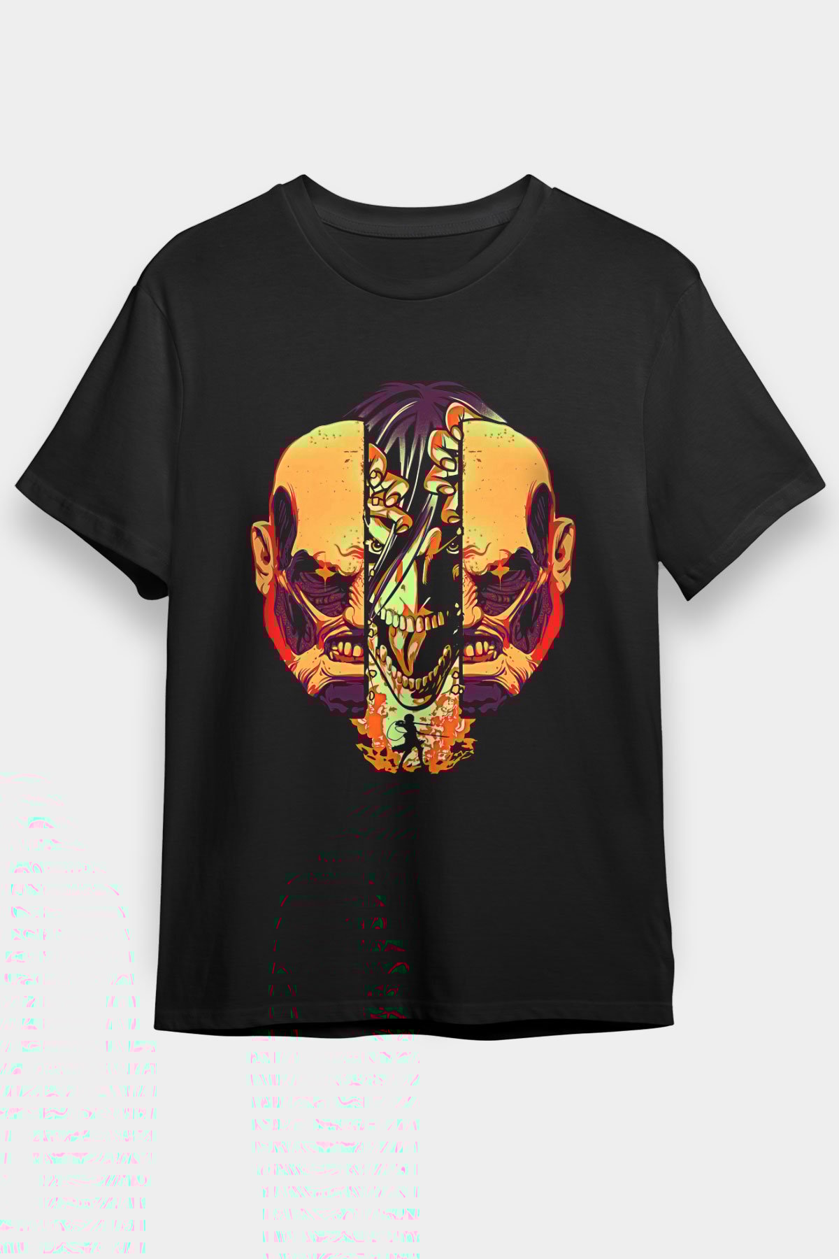 Attack On Titan Baskılı Unisex Siyah Tişört - Tshirt