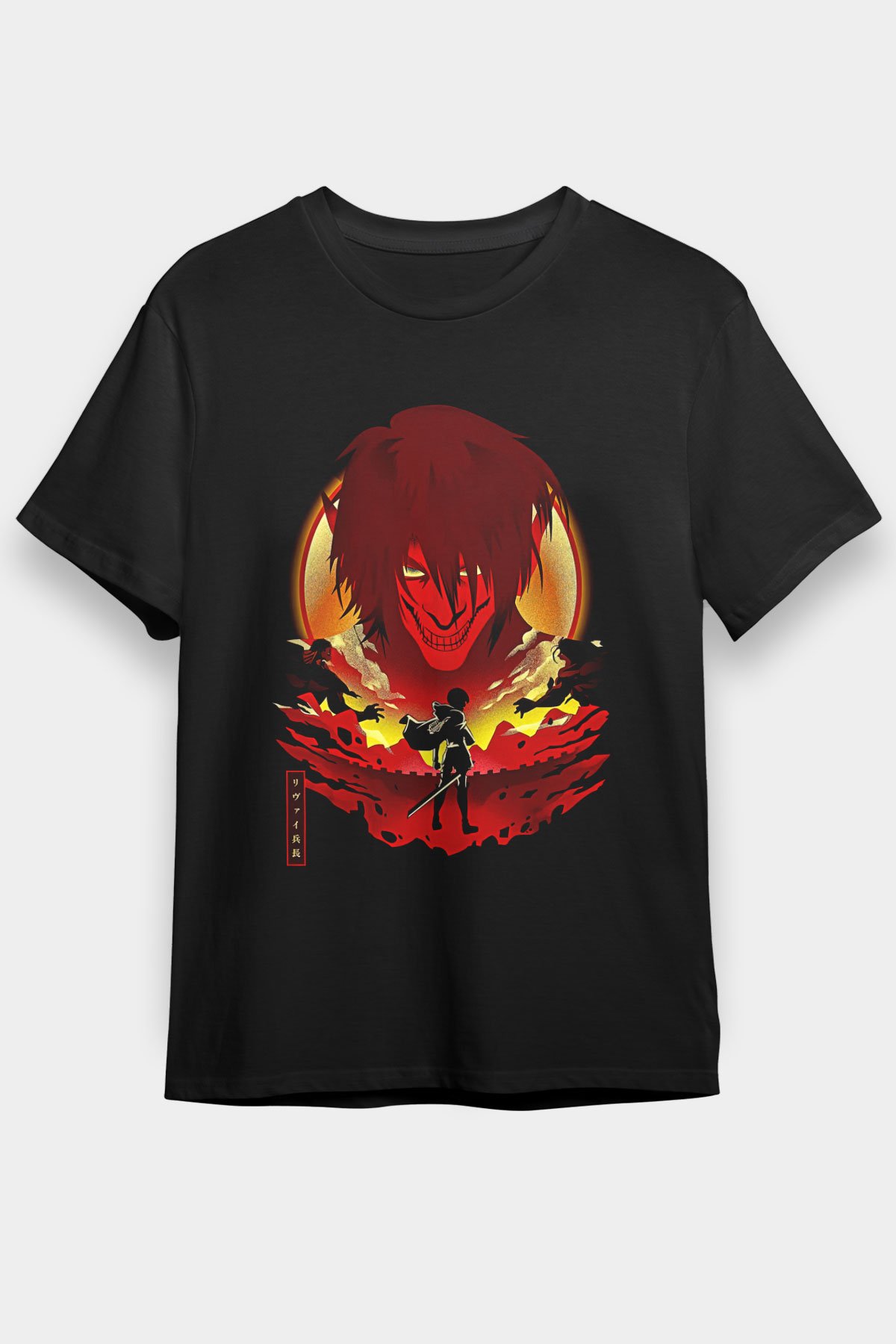 Attack On Titan Baskılı Unisex Siyah Tişört - Tshirt