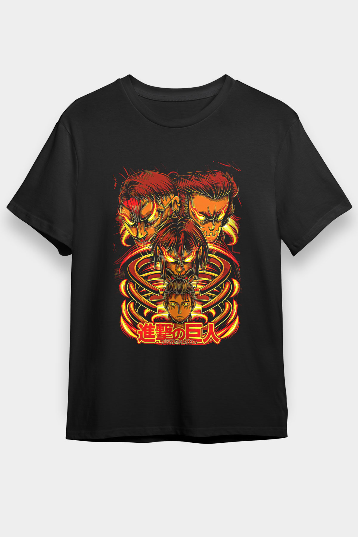 Attack On Titan Baskılı Unisex Siyah Tişört - Tshirt