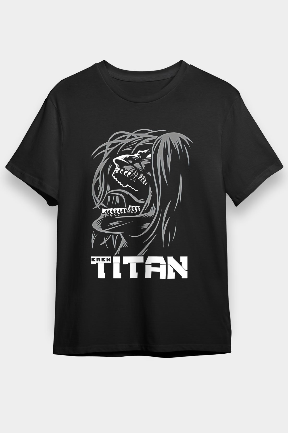 Attack On Titan Baskılı Unisex Siyah Tişört - Tshirt (T56372)