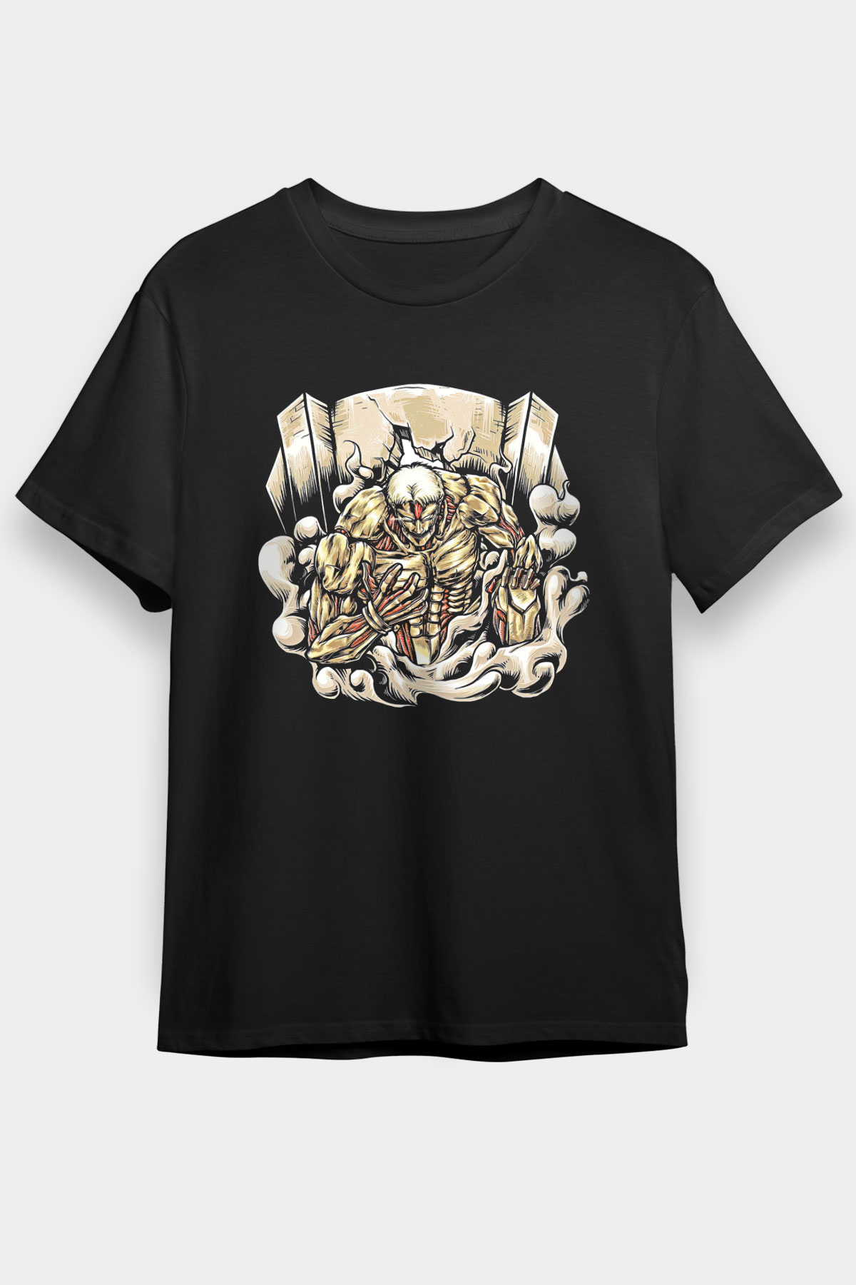 Attack On Titan Baskılı Unisex Siyah Tişört - Tshirt