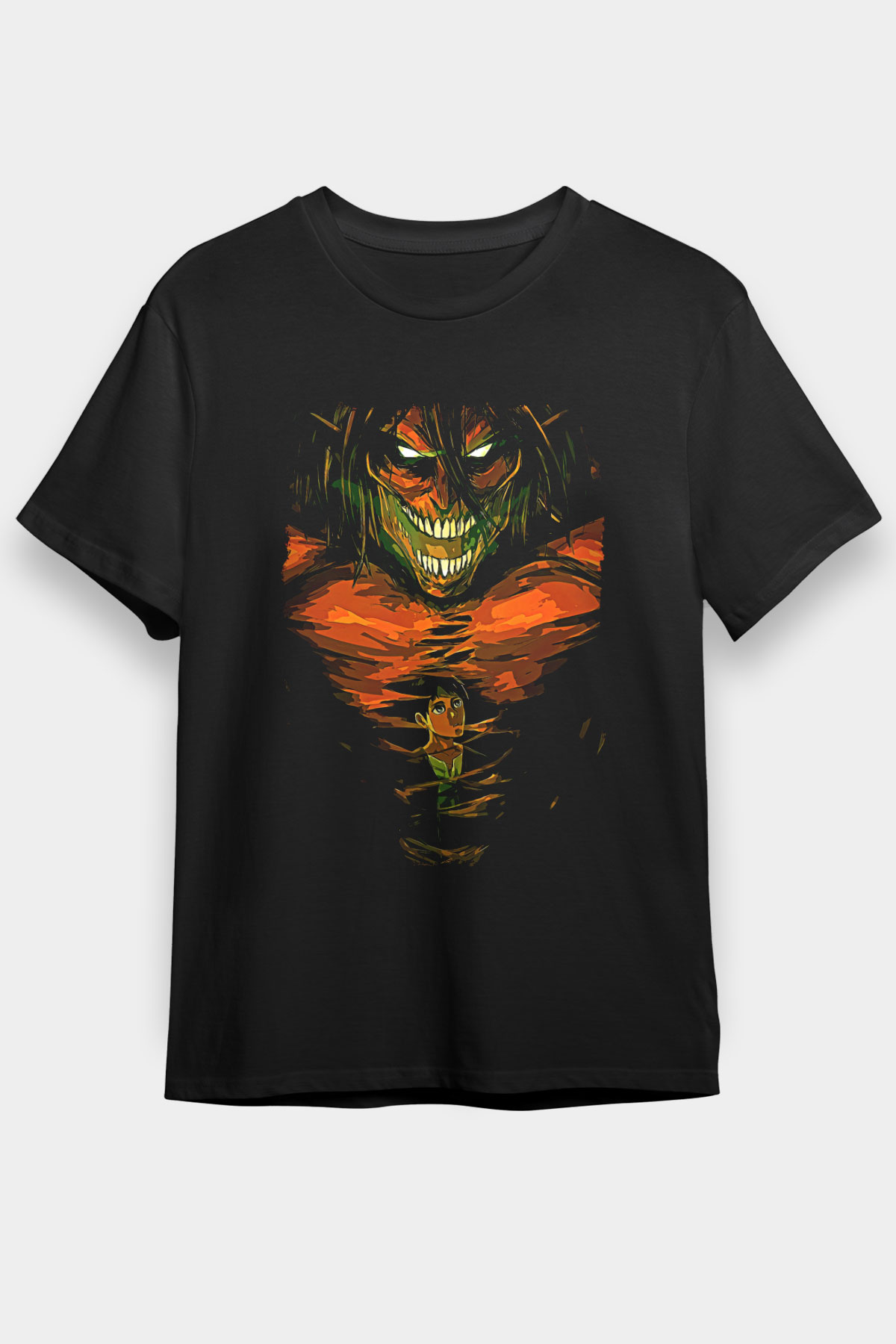 Attack On Titan Baskılı Unisex Siyah Tişört - Tshirt