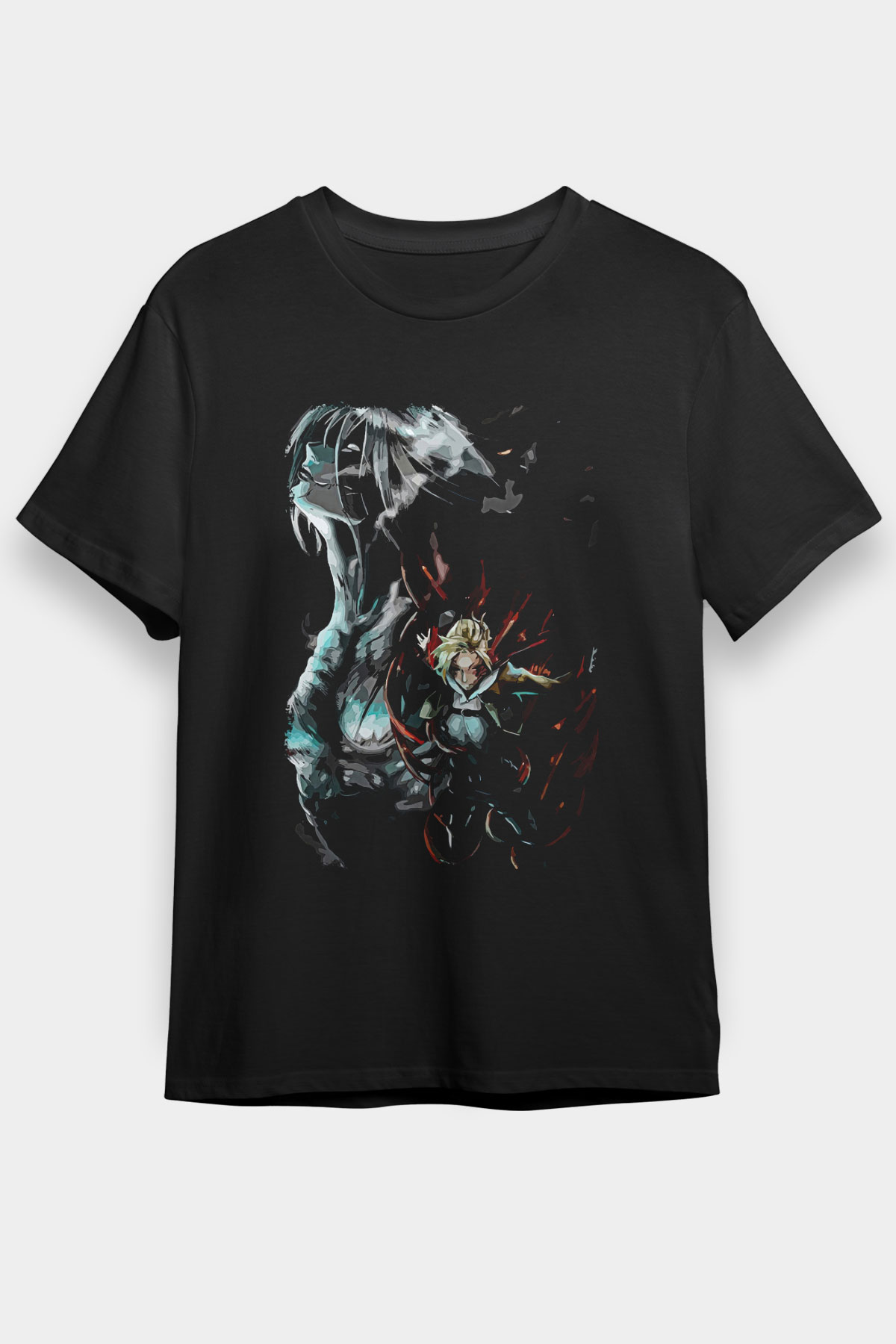 Attack On Titan Baskılı Unisex Siyah Tişört - Tshirt