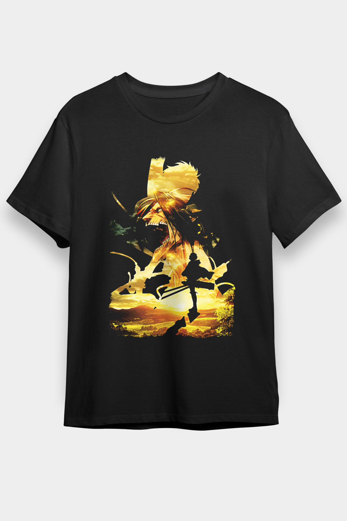 Attack On Titan Baskılı Unisex Siyah Tişört - Tshirt