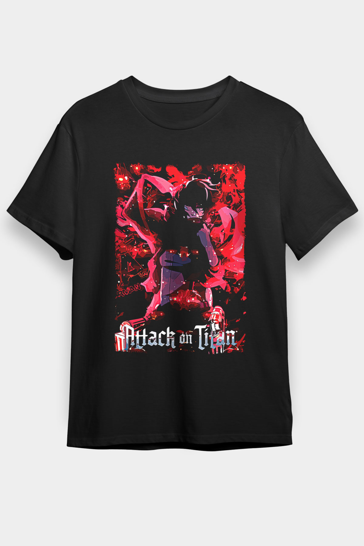 Attack On Titan Baskılı Unisex Siyah Tişört - Tshirt