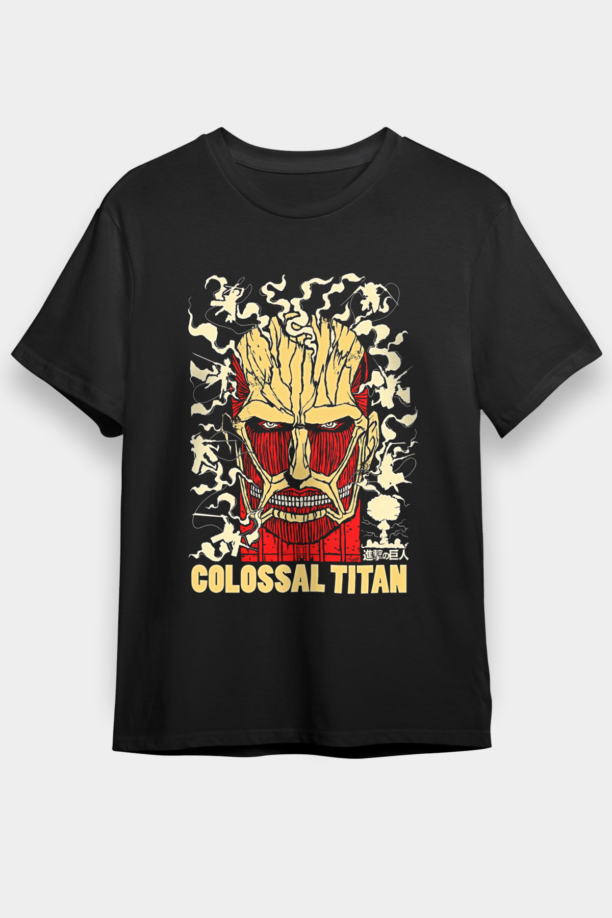Attack On Titan Baskılı Unisex Siyah Tişört - Tshirt