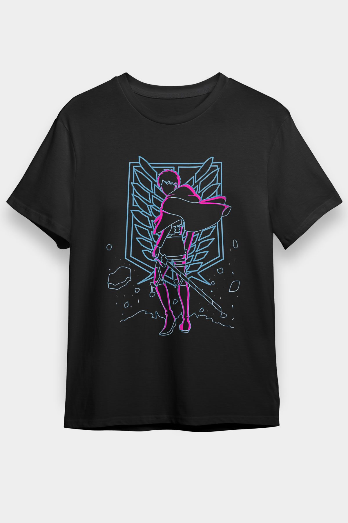 Attack On Titan Baskılı Unisex Siyah Tişört - Tshirt (T56400)
