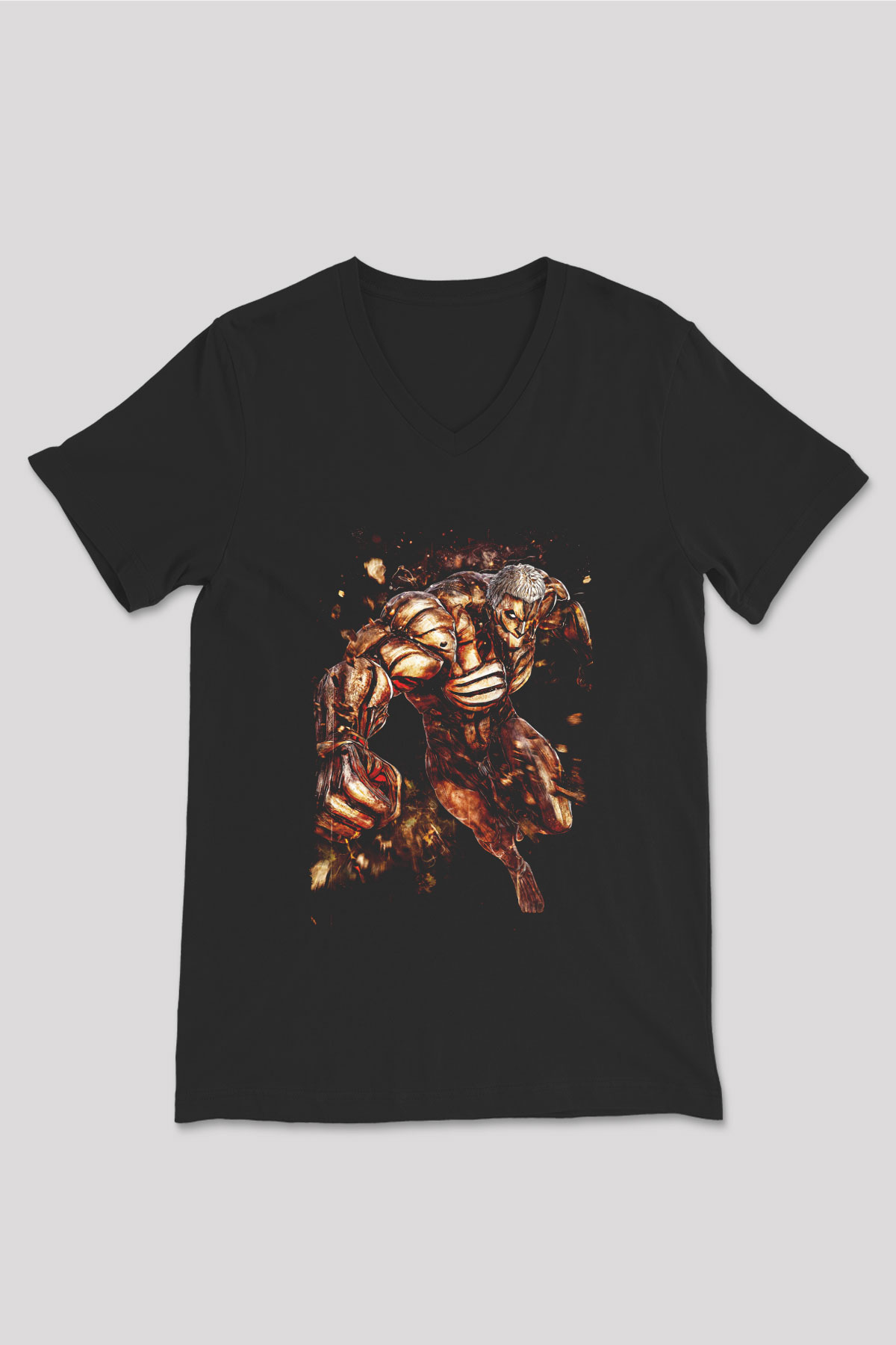 Attack On Titan Baskılı Unisex Siyah V Yaka Tişört - Tshirt
