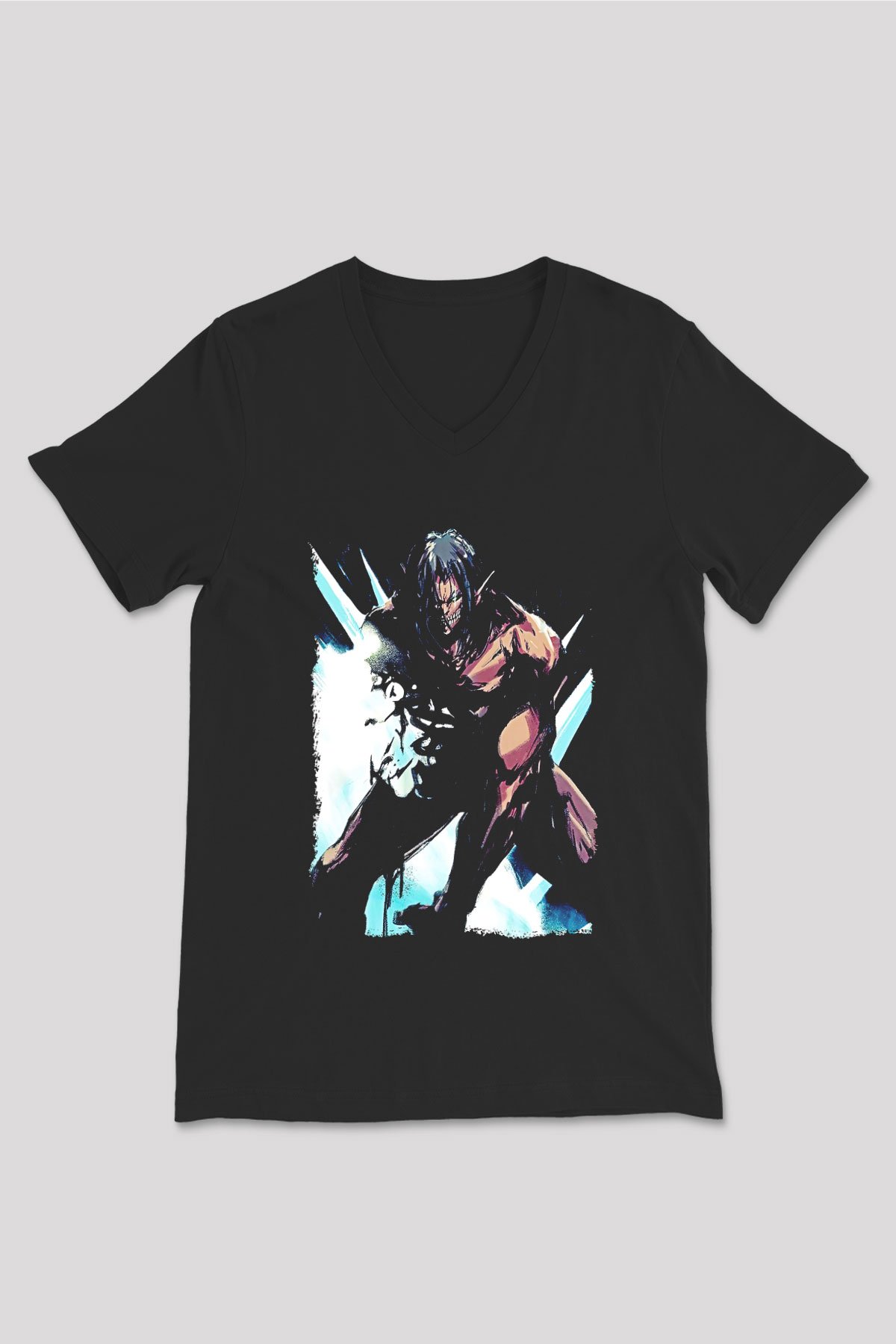 Attack On Titan Baskılı Unisex Siyah V Yaka Tişört - Tshirt