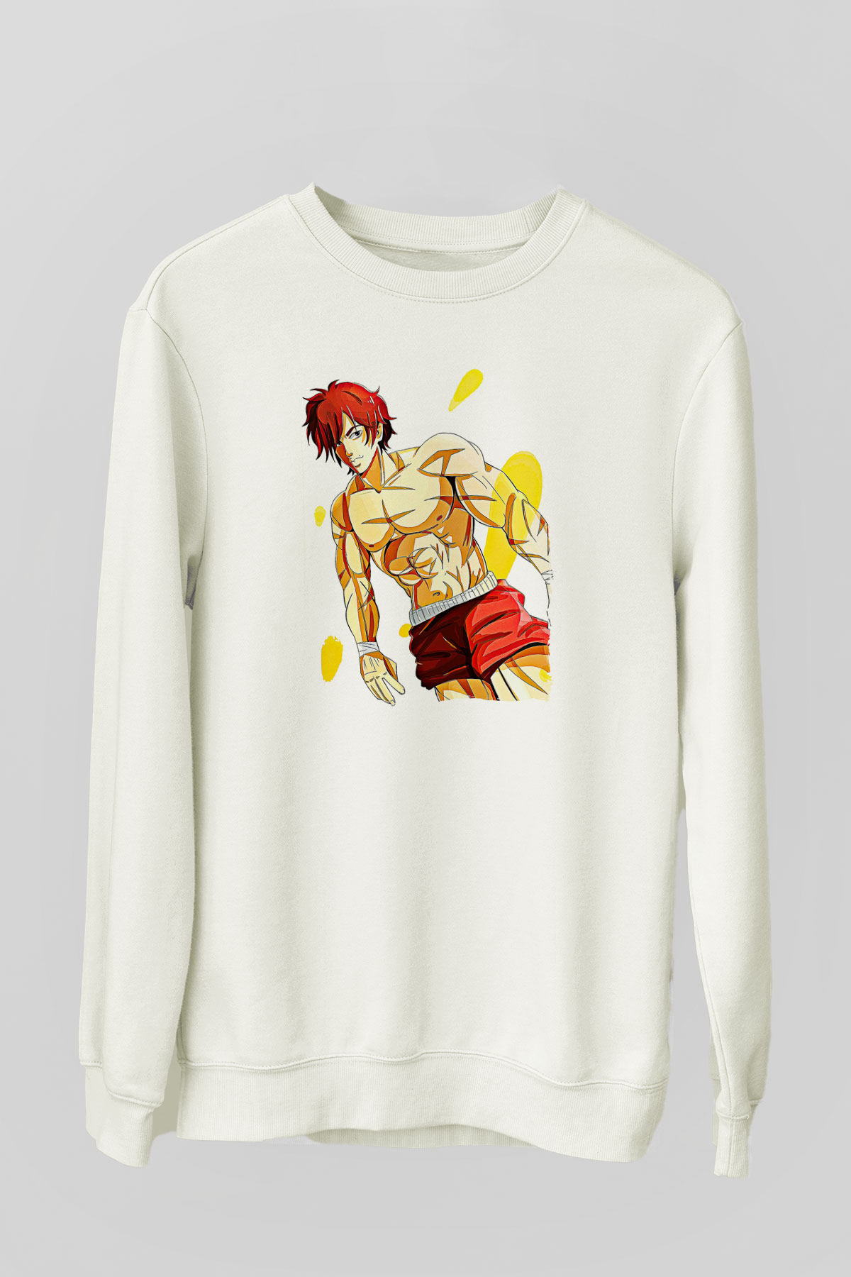 Baki The Grappler Baskılı Beyaz Unisex Sweatshirt (SW58765)