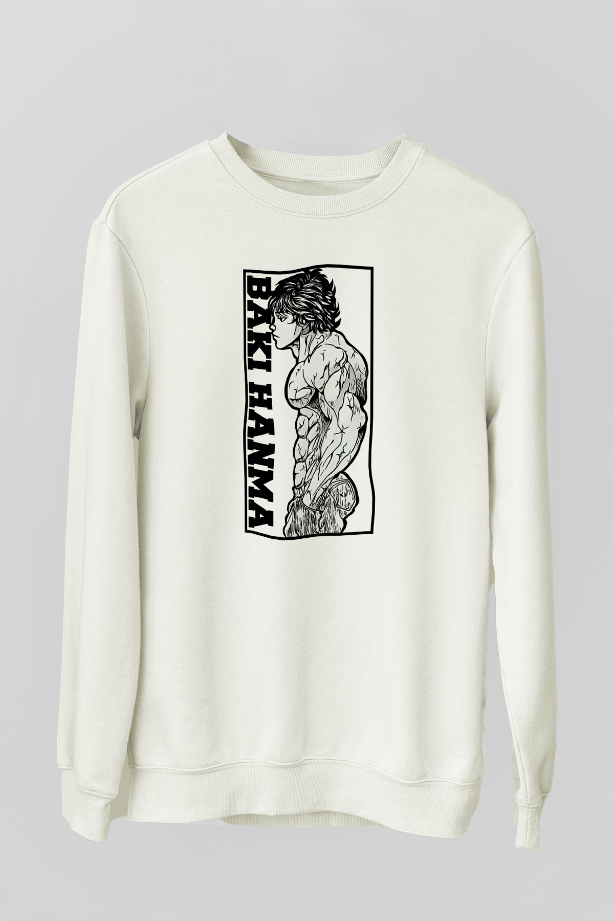 Baki The Grappler Baskılı Beyaz Unisex Sweatshirt (SW58769)
