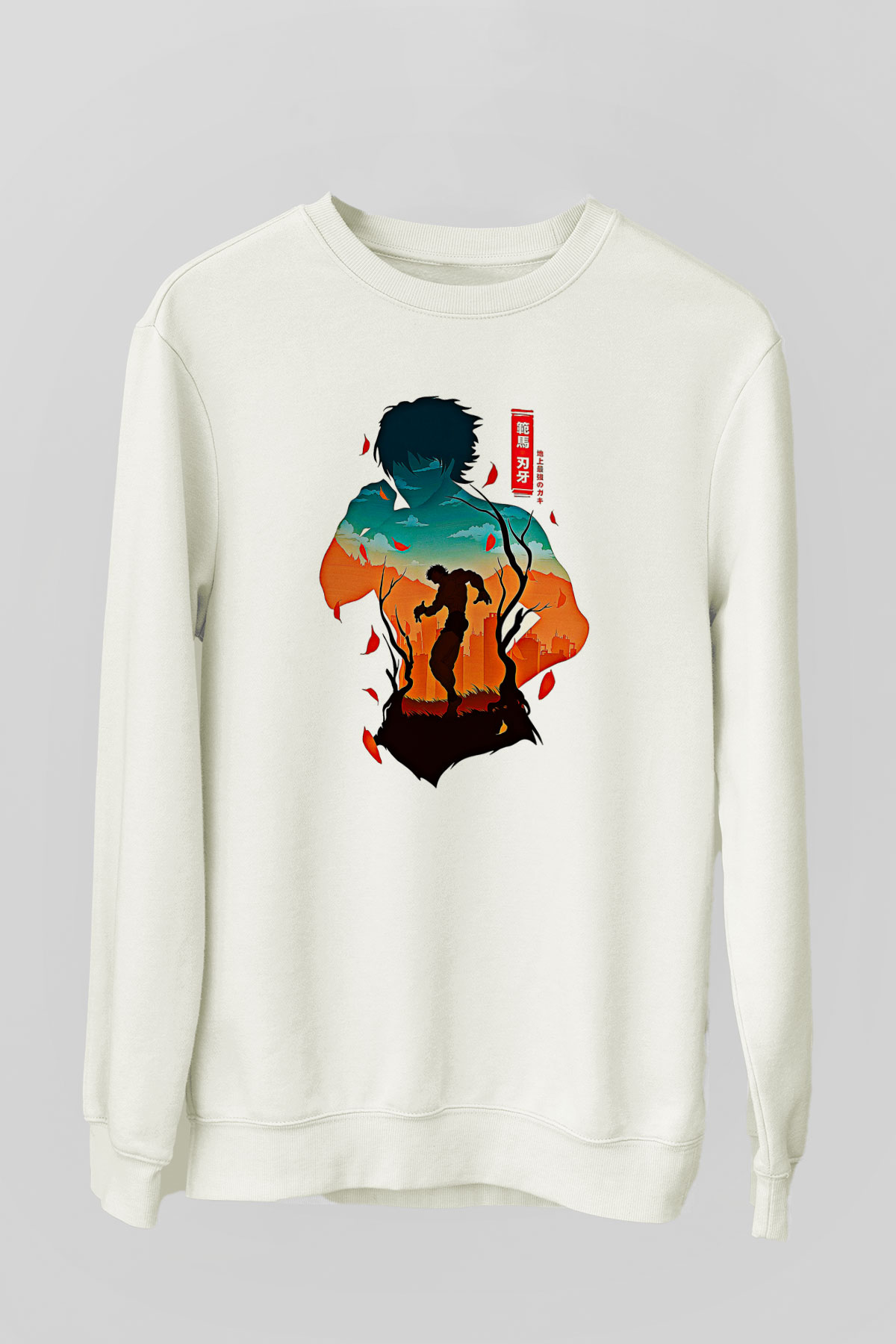 Baki The Grappler Baskılı Beyaz Unisex Sweatshirt (SW58770)