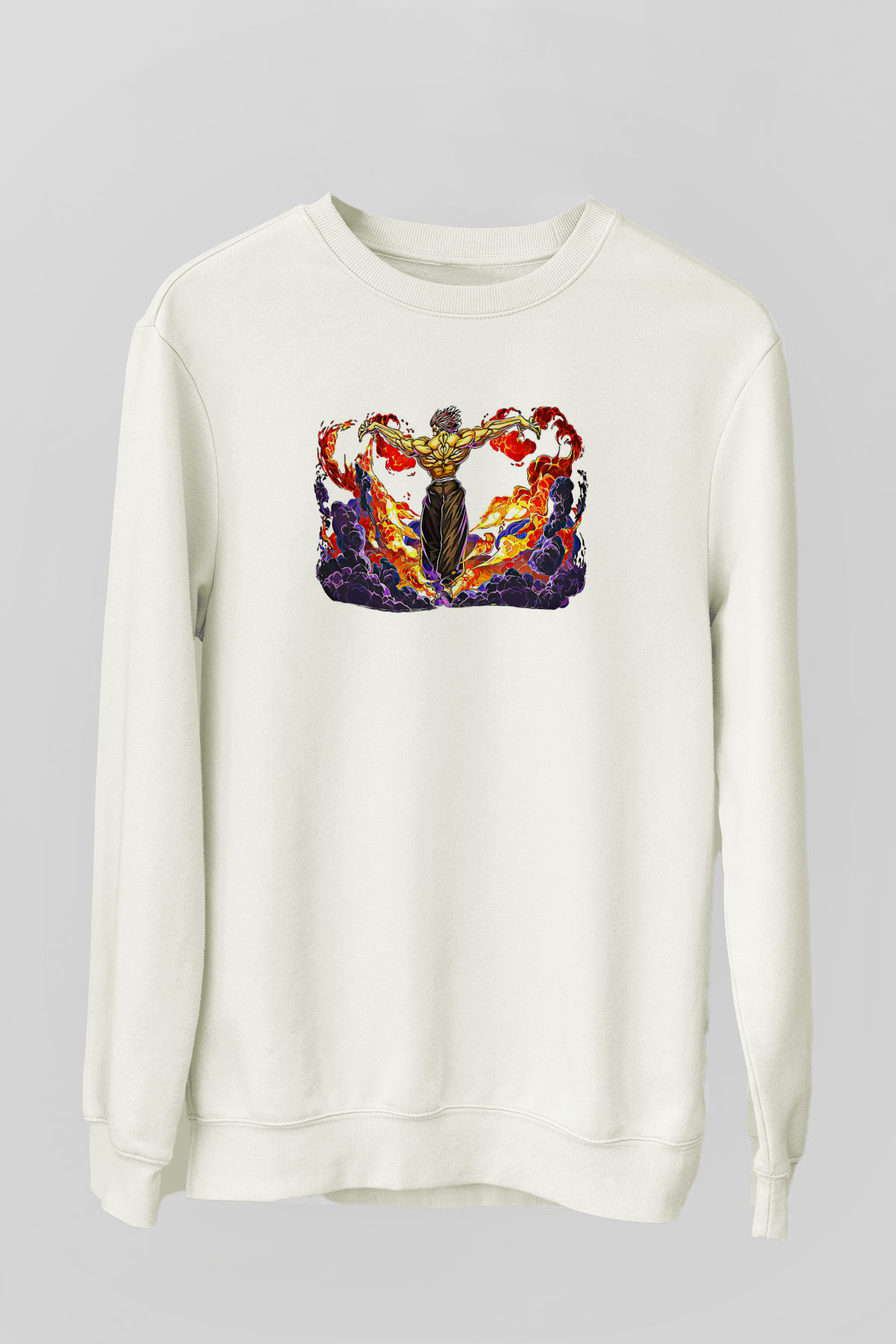 Baki The Grappler Baskılı Beyaz Unisex Sweatshirt (SW58775)